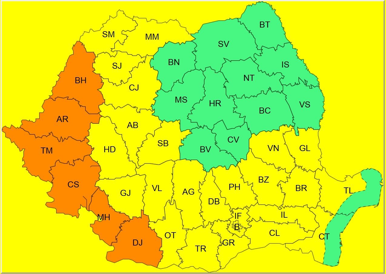 A meteorológusok szerint szombat déltől vasárnap délelőtt 10 óráig elsőfokú (sárga jelzésű) riasztás érvényes a Bánságban, a Körösvidéken, Olténiában, Munténiában és Dobrudzsa délnyugati részében – írja az Agerpres.