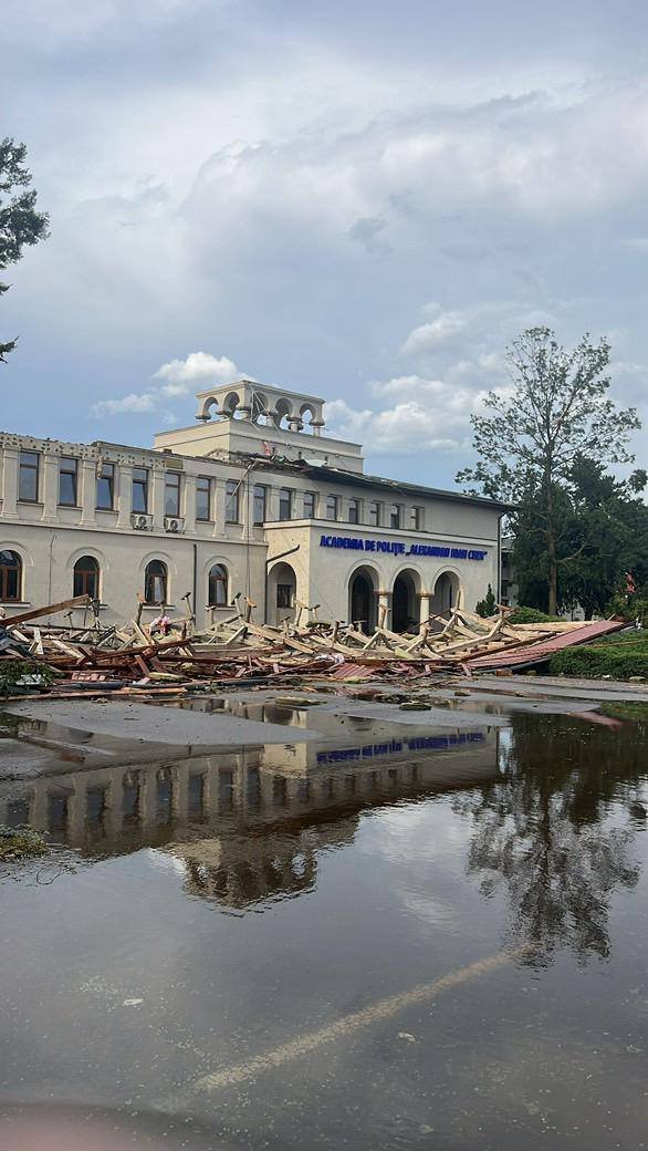 A szél egyebek között a bukaresti Alexandru Ioan Cuza rendőrakadémia tetőszerkezetét is megrongálta, több osztályterem beázott.