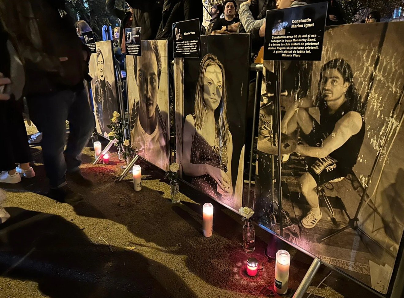 A volt Colectiv klub előtt, ahol az áldozatok fényképeit is kihelyezték, koszorúkat tettek és gyertyákat gyújtottak a tíz évvel ezelőtti tragédia 65 áldozatának emlékére, írja az Agerpres.