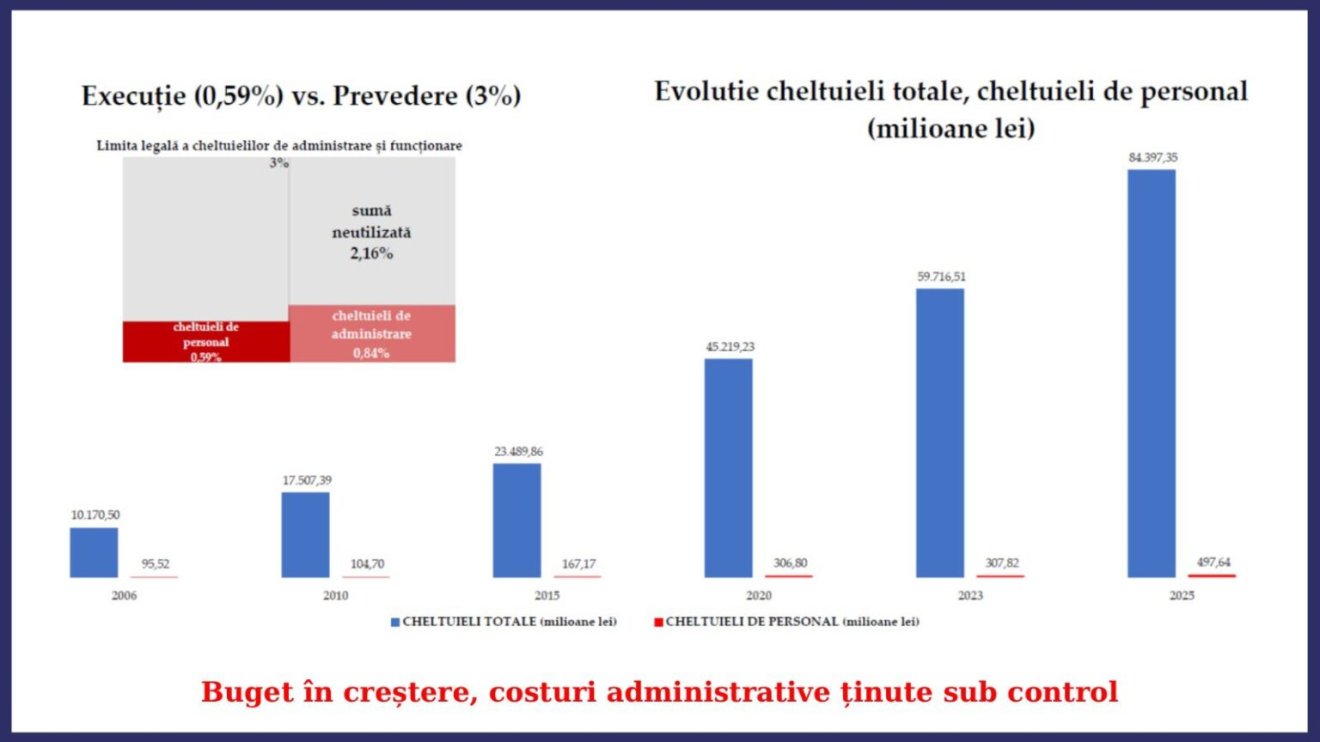 „A 2008-as állapothoz képest a rendszer ma közel 28 százalékkal kevesebb alkalmazottal működik, miközben az általa kezelt egészségügyi szolgáltatások volumene több mint tizenegyszeresére, pénzügyi kitettsége pedig több mint nyolcszorosára nőtt. Az adminisztratív költségek a teljes költségvetés 0,84 százalékát, a személyi jellegű ráfordítások pedig 0,59 százalékát teszik ki, ami jelentősen elmarad a törvényben rögzített 3 százalékos maximális küszöbtől” – fogalmaz üzenetében Horațiu-Remus Moldovan, majd kiemeli: