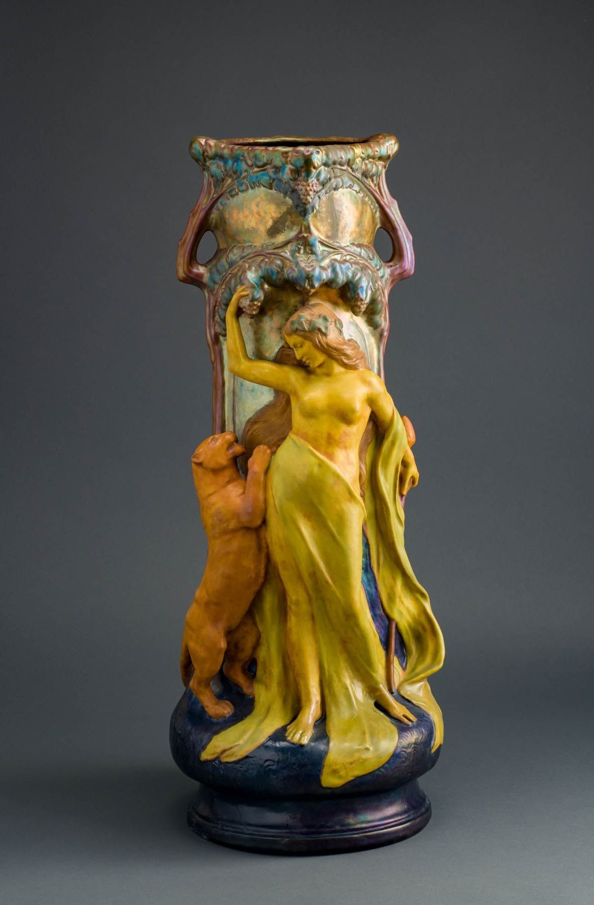 Párducot és egy női alakot ábrázoló padlóváza