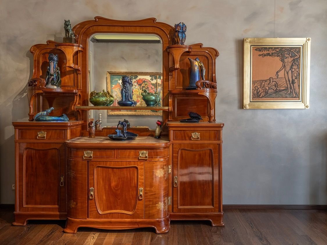A szecesszió hatását a kiállított bútordarabokon is láthatjuk