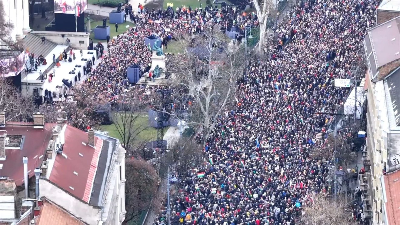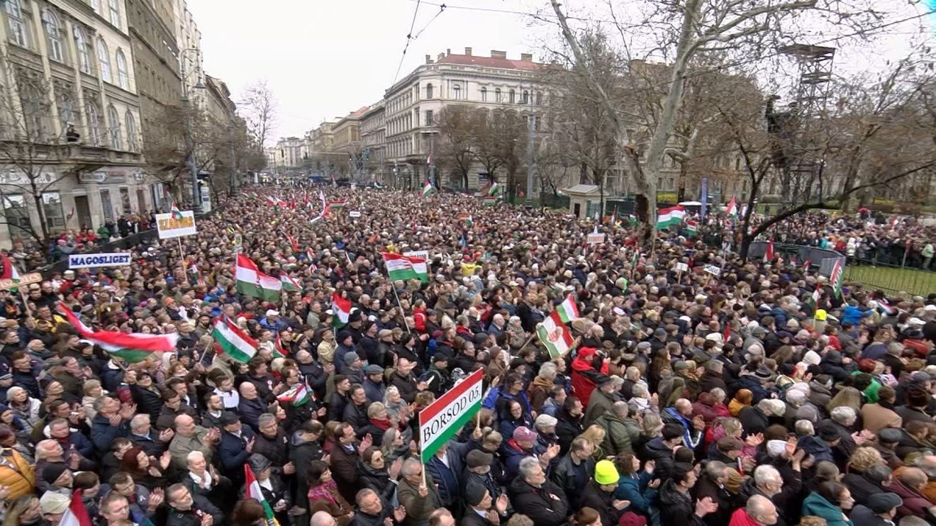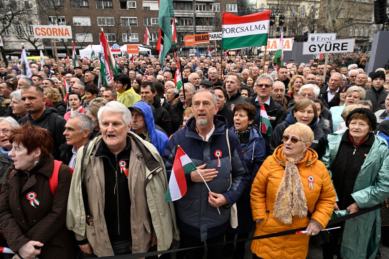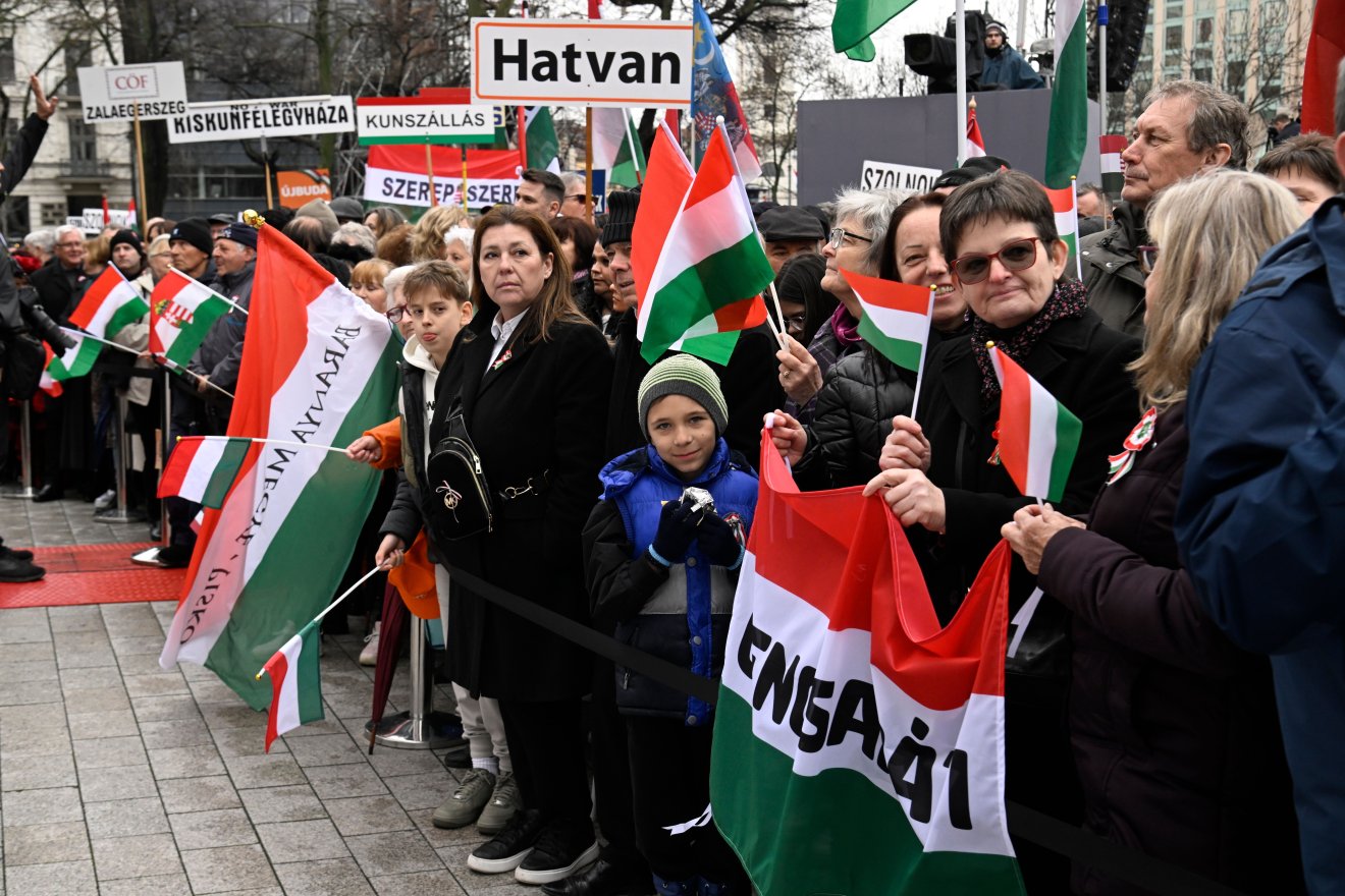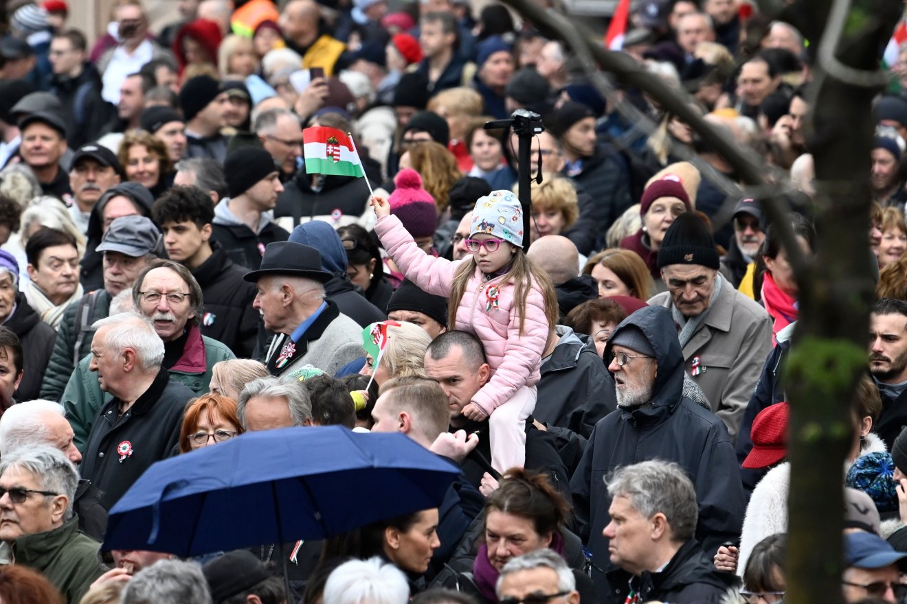 Résztvevők az 1848/49-es forradalom és szabadságharc 177. évfordulója alkalmából tartott állami díszünnepségen a Múzeumkertnél 2025. március 15-én