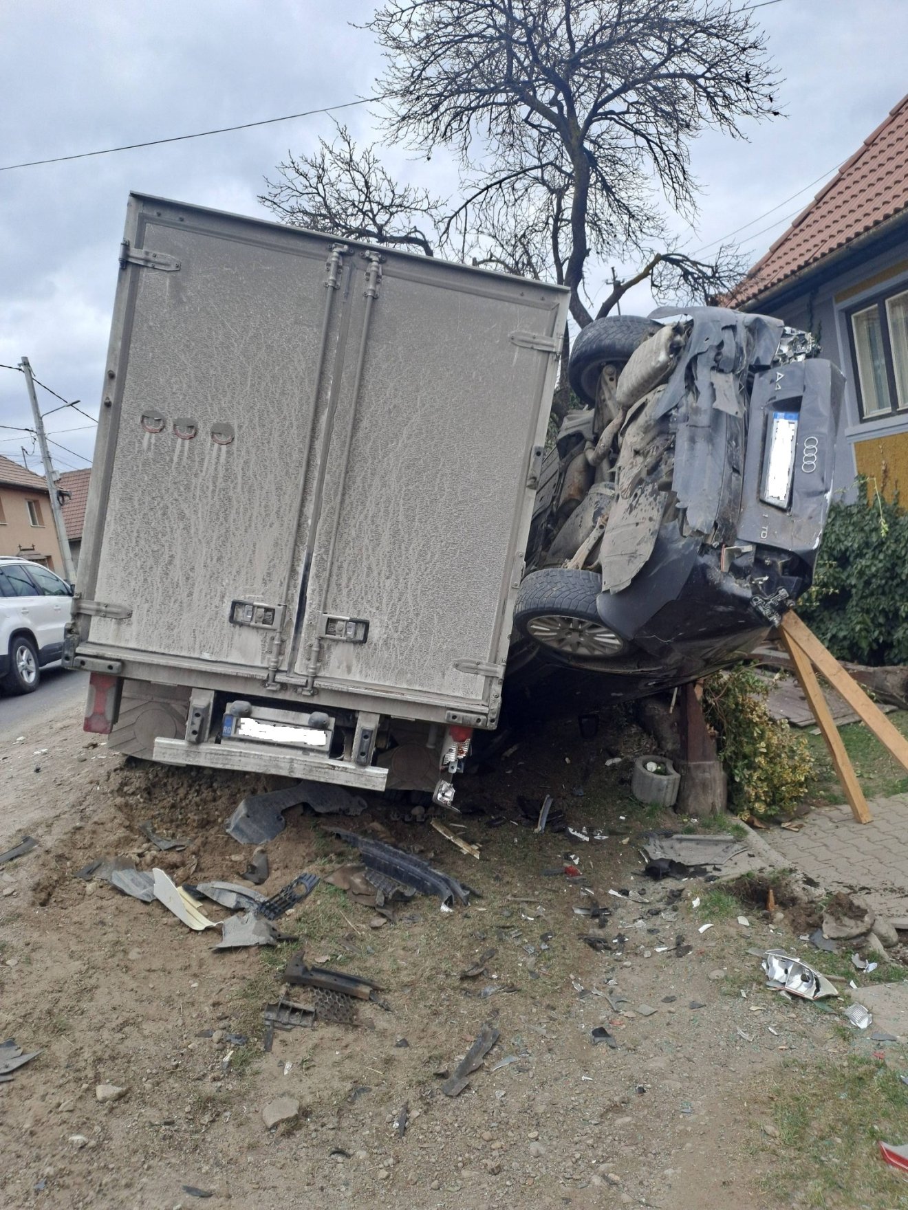 Mint a helyszínen készült, a Csiki közlekedési infó nevű Facebook-oldalra feltöltött fotók is mutatják, az ütközés következtében a személygépkocsi az oldalára borult, és valósággal beszorult a kerítés és a kisteherautó közé.