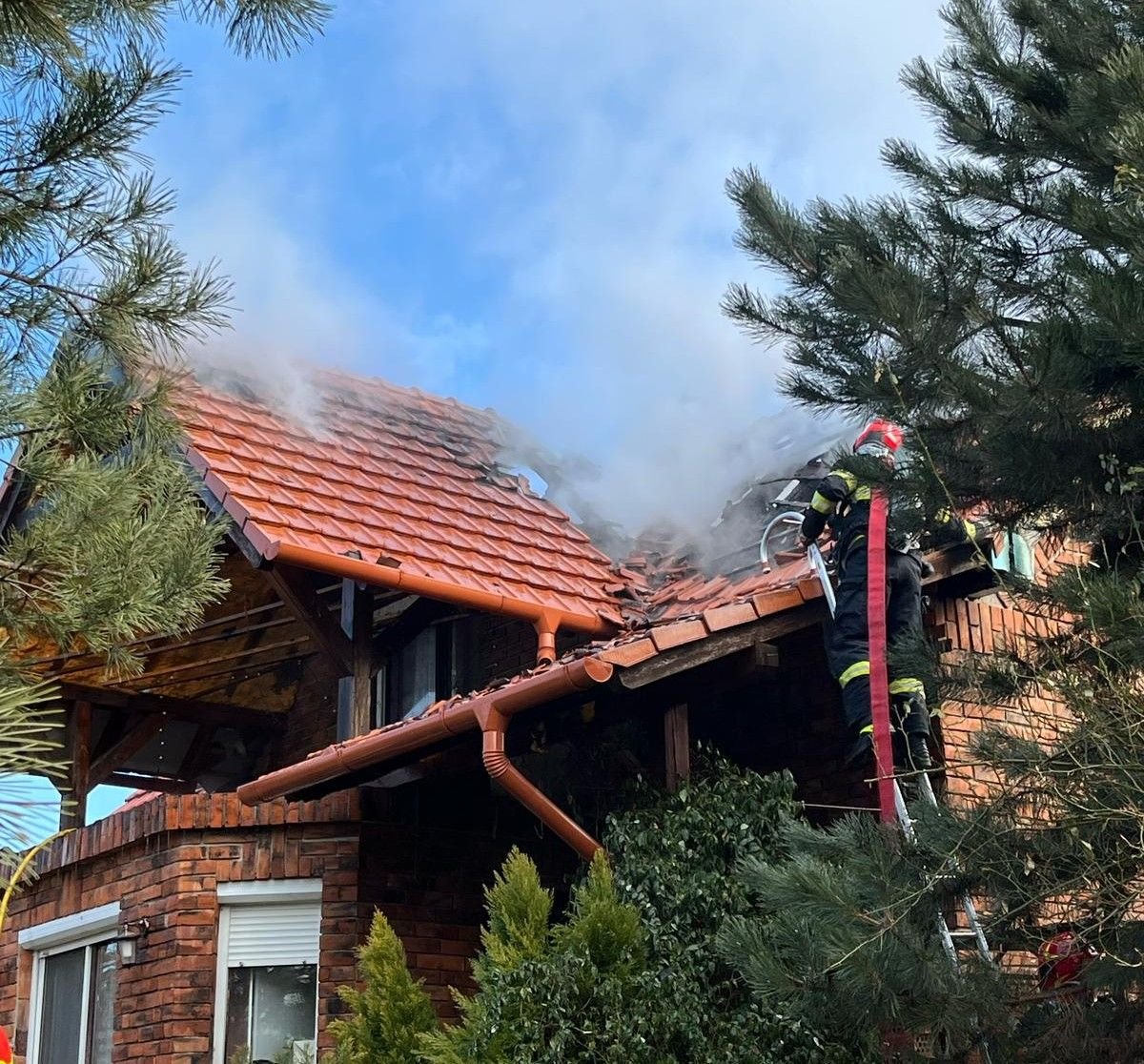 Nem sokkal később, 10.55 órakor érkezett a második riasztás. Öt csapat szállt ki Hegyközszáldobágyra, ahol egy ház tetője és tetőtere állt lángokban. A tüzet kevesebb mint 20 perc alatt oltották el, így sikerült megvédeni a földszinti szobákat és egy melléképületet. Leégett két televízió, egy íróasztal és a tető körülbelül 80 százaléka. A szerencsétlenséget egy megrongálódott vagy nem megfelelően hővédett kémény okozhatta.
