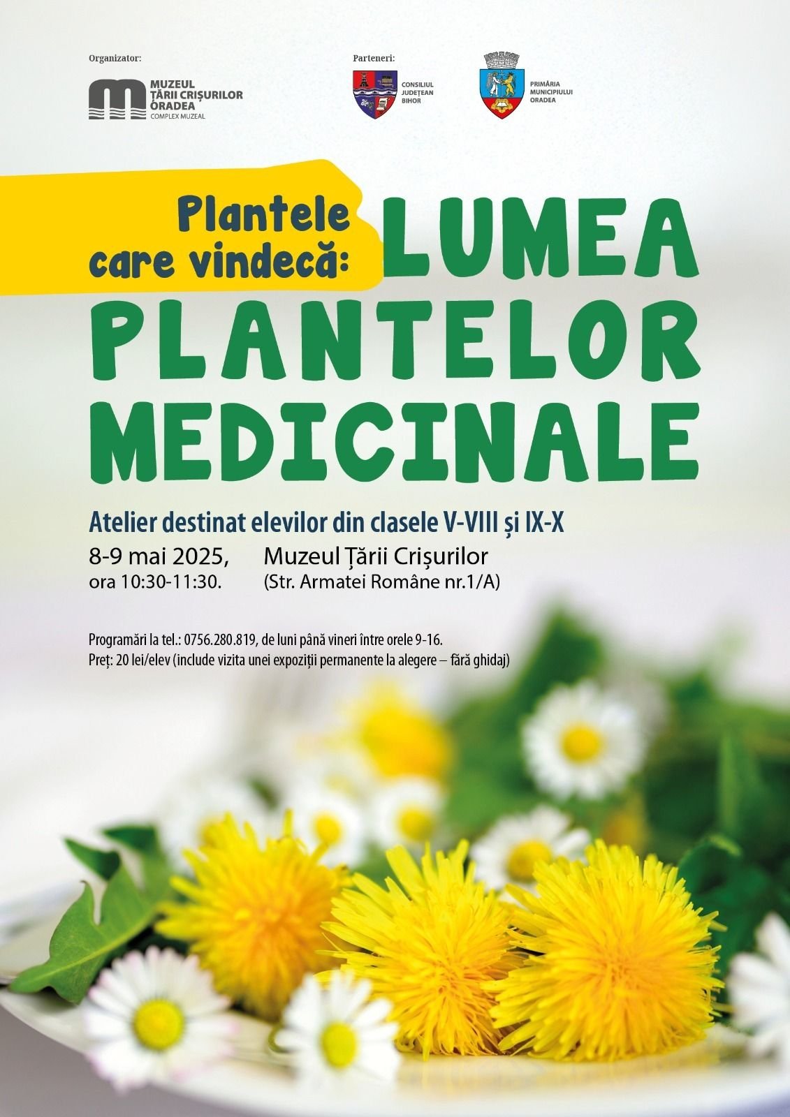 Múzeumpedagógiai foglalkozást szervez a Körösvidéki Múzeum V–VIII. és IX–X. osztályos diákok számára: május 8-án és 9-én 10.30-tól a múzeum székhelyén (Rulikowski/Armatei Române 1/A) a gyógynövényekkel ismerkedhetnek meg a diákok. A Nagyvárad Polgármesteri Hivatala és a Bihar Megyei Tanács partnerségében létrejövő foglalkozást Adina Pop és Gabriela Lobonț muzeológusok vezetik. Szó lesz a gyógynövényekről, azok használatáról. Részvételi díj 20 lej/diák, ami magába foglalja egy szabadon választott tárlat megtekintését is (tárlatvezető nélkül). Jelentkezni hétfőtől péntekig 9–16 óra között a 0756-280-819 telefonszámon lehet.