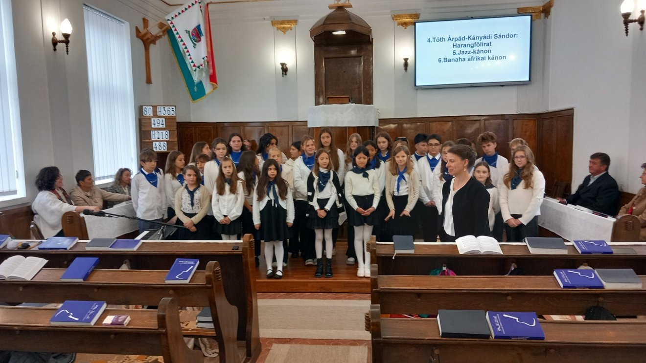 A Kolozsvári Talentum Református Iskola nagy kórusa hét rövid énekkel (kánonokkal, egyszerű, két-három szólamú dalokkal) örvendeztette meg hallgatóságát. Tulajdonképpen az időseket köszöntötték ily módon, hiszen, mint elhangzott, az elmúlt vasárnap ugyan már megünnepelték a szépkorúakat az egyházközségben, de ezzel a fellépéssel még kiegészült az akkori program.