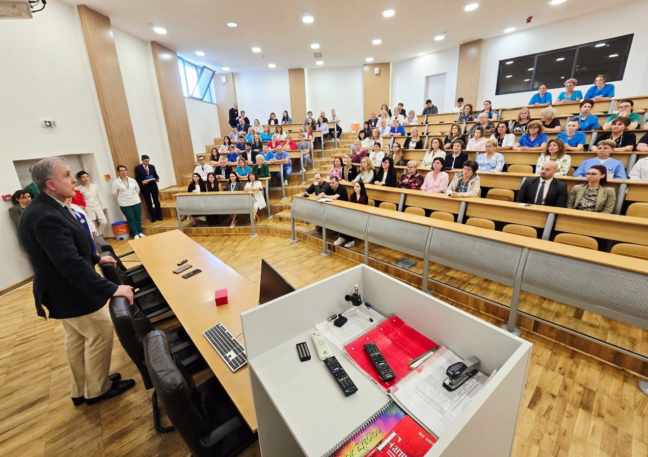 A héten Nagyváradra látogatott Radu herceg, több intézményt is felkeresve (polgármesteri hivatal, görögkatolikus püspökség stb.). Szerda délután a megyei kórház Kálvária (Dózsa György) úti épületében járt, ahol nemcsak a vezetőséggel, hanem az amfiteátrumban a többi egészségügyi dolgozóval is találkozott. A jelenlevők felállva üdvözölték, amikor belépett a terembe, az összejövetel pedig nagyjából öt percig tartott. A magas rangú vendég kijelentette, hogy a Királyi Ház figyelemmel kíséri mindazt, ami a szociális és az egészségügyi ágazatban történik. Különösen fontosnak tartják a kórházi alkalmazottak munkáját, hiszen az emberek gyógyításával, ápolásával foglalkoznak, boldoggá téve őket. „Csodálom önöket, minden elismerésem azért, amit tesznek!”, fogalmazott. Megjegyezte: a rendszerváltozás óta eltelt időszakban a romániai társadalmat sok csalódás érte, mégis az egészségügyi alkalmazottak reményt nyújtanak számunkra, a tevékenységükkel azt bizonyítják, hogy másképpen is lehet. Azon meggyőződésének is hangot adott Radu herceg, hogy a hazai egészségügyi képzés magas színvonalú, hiszen például Belgiumban a kórházi dolgozók két százaléka Romániából vándorolt ki. Végül arról is beszélt, hogy a magánklinikákon az orvosi ellátás „talán a kórházsorozatokban látottakat is meghaladja”, viszont most, hogy a megyei kórházban járt, megtapasztalta azt, hogy egy állami intézményben is lehet kínálni ugyanilyen minőségű szolgáltatásokat.