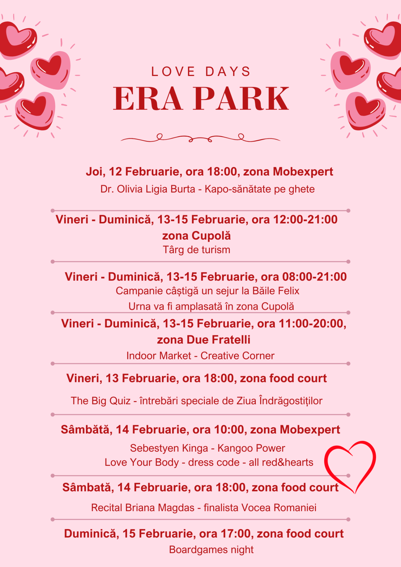 E sokszínű programmal és mindenki ízlésének megfelelő tevékenységekkel a nagyváradi ERA Park célja, hogy a látogatóknak egy emlékezetes hétvégét kínáljon, ünnepi, meghitt és pozitív energiával teli hangulatban.