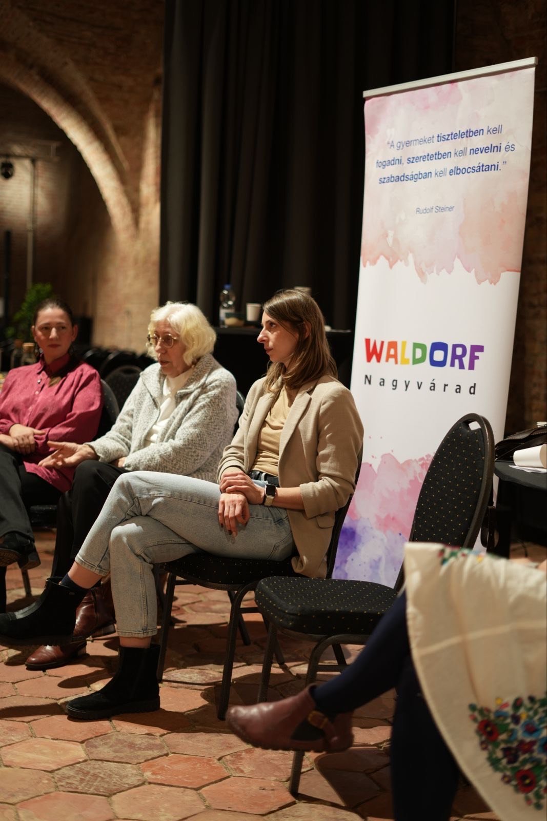 A bemutatkozó kört követően Verginia Petrovici antropozófus, a Waldorf-pedagógia romániai meghonosítója mesélt a kezdetekről, az indulás nehéz, mégis reményteli körülményeiről. A rendszerváltást követő tanügyi reformok elkötelezett szereplőjeként találkozott az ő személyes pedagógiai elképzelése egy,