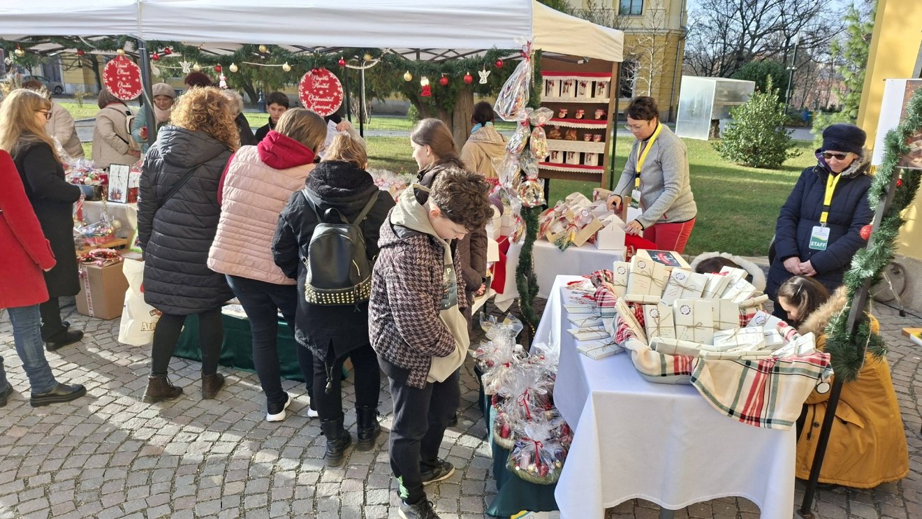 A jótékonysági adventi vásár megszokott helyszínén, a székesegyház előtti téren a téli napsütésben sokan nézelődnek azzal a céllal, hogy kézműves termékeket vásároljanak, és adományaikat nemes célokra ajánlják fel. A szervezők szeretettel hívják és várják mindazokat, akik a karácsony felé vezető úton szeretnék megtapasztalni a találkozások, a közösség, az együtt töltött minőségi idő felbecsülhetetlen értékét, kilépve a hétköznapok szürkeségéből.