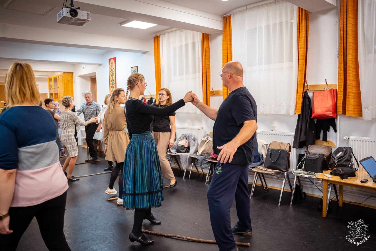 A szombati megnyitó után a résztvevők Maier Reimond vezetésével a különböző tájegységekre jellemző táncokkal ismerkedhettek, de – ahogy az oktatótól megtudtuk – szót ejtenek majd a tánc és játék kapcsolatáról, illetve a pedagógusok módszertani segítséget is kapnak arra, hogyan adhatják át minél hatékonyabban a gyerekek számára mindazt, amit a képzésen tanultak.