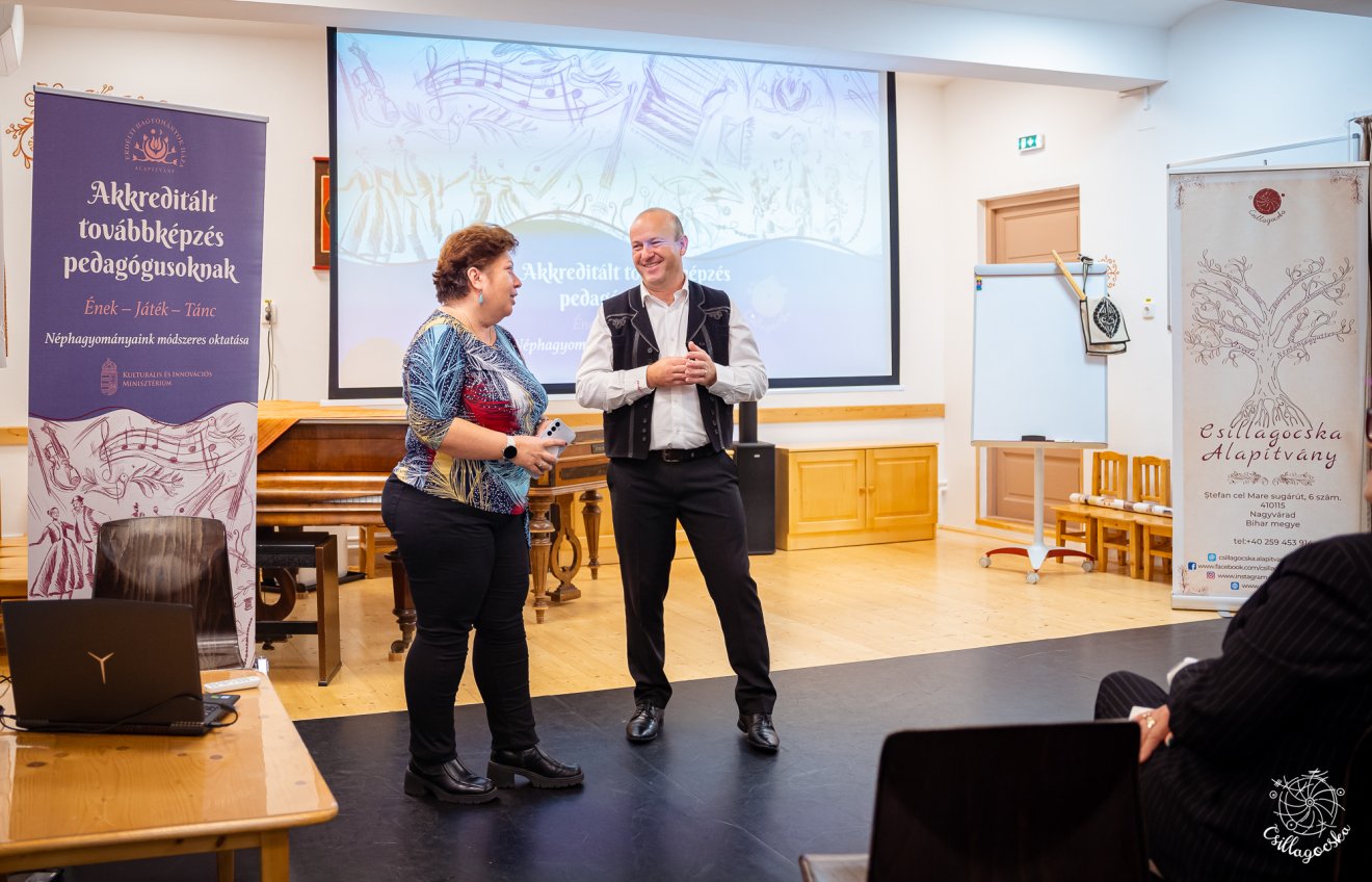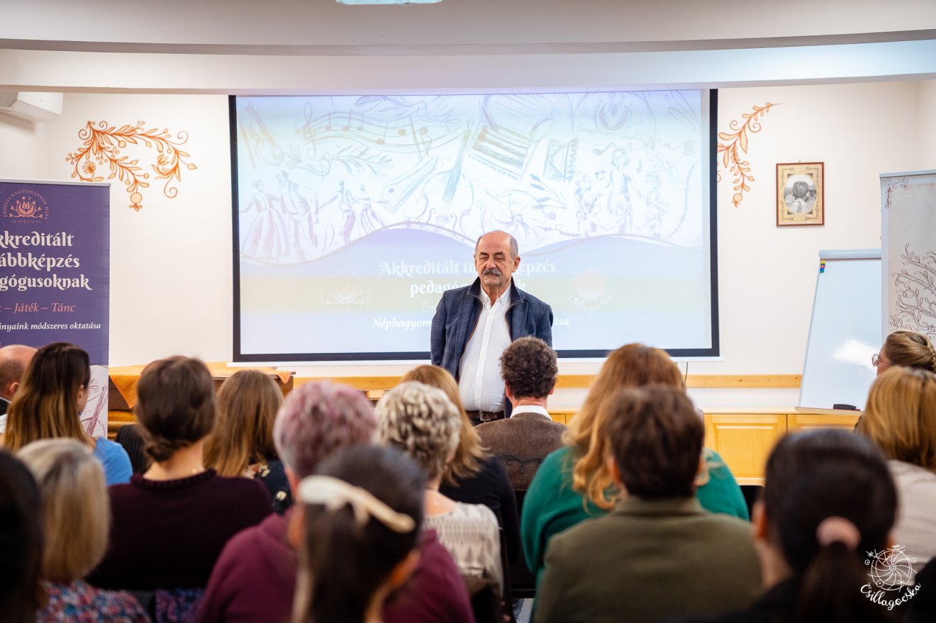 Pálfi József, a házigazda Csillagocska Alapítvány elnöke elsősorban lelkészi minőségében szólt a képzés résztvevőihez, az Apostolok cselekedeteiről írott könyv első részéből idézve elmondta: ahogy az apostolok az asszonyokkal és Máriával együtt „egy szívvel-lélekkel”, a görög kifejezés szerint „szümfóneában” imádkoztak, úgy legyenek egymással szimfóniában a képzés résztvevői is. Kelemen László, az Erdélyi Hagyományok Háza Alapítvány elnöke a budapesti Hagyományok Háza, illetve annak stratégiai partnereként működő, 2019-ben létrehozott erdélyi szervezet történetét, küldetését röviden ismertetve szintén lélekkel teli munkát kívánt a képzés résztvevőinek. A továbbiakban a magyar kultúra továbbéltetését szolgáló képzés fontosságát emelte ki Tankó Zita, az óvodai és elemi oktatásért felelős szaktanfelügyelő és a tanfolyam mintegy hároméves előkészítésében a tanügyminisztériummal kapcsolatot tartó Deme Szabó Csilla is.