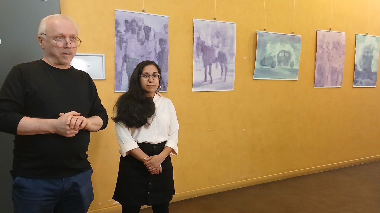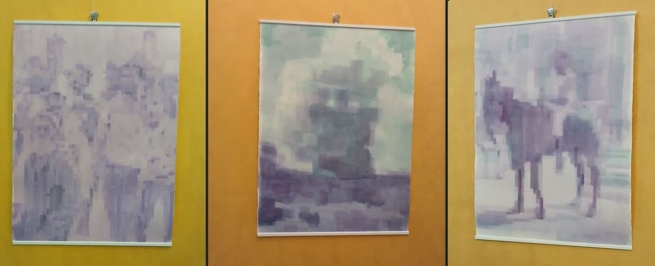 Priya N. Green elmondta, hogy először jár Romániában, és ez az első nemzetközi bemutatkozása. Hozzátette, hogy az itt kiállított munkák kísérleti jellegűek, hiszen általában nagy méretű olajfestményeket készít, de logisztikai okok miatt azokat nem tudta magával hozni. Így ezúttal nem vászonra, hanem papírra festett vízfestékkel, de ugyanabban a témában. Mint elhangzott az ötletet a munkáihoz talált képekből nyeri, pontosabban a híradásokban látott fotók inspirálják. A hírekből vett képek egy-egy részletét festi meg, monokróm színeket használva, pixeles hatást keltve, ezzel utalva arra, hogy milyen hatással lehet elménkre a folyamatos képáradat, hogyan emlékezünk egy-egy fotóra és milyen a digitális és a való világ közötti kapcsolat.
