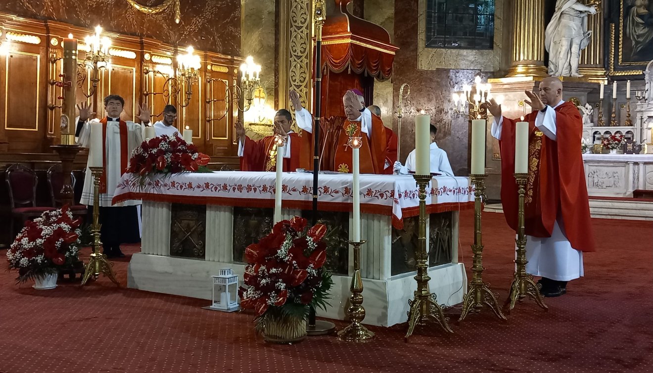 Arról is beszélt a főpásztor: elképzelhetjük a tanítványok lelki állapotát, amikor találkoztak a feltámadt és őket kereső Jézussal, aki tudta, hogyan szólítsa meg hű követőit: „Békesség nektek!”. Ez azonban nem csak egy egyszerű köszöntés volt, hanem sokkal mélyebb, őszintébb, közelséget kifejező gesztus. Mintha azt mondta volna nekik: emlékezetek vissza, nyugodjatok meg és ne féljetek! Pünkösd ünnepe tehát ezt az üzenetet hozza számunkra is: találjuk meg önmagunkat és a minket szerető Istent.