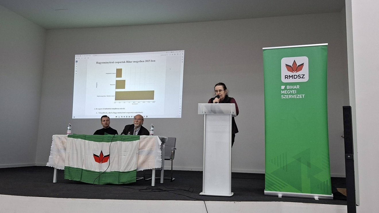 A tájékoztató után Hodgyai Edit egy tanulmányt ismertetett a Bihar megyében 2025-ben működő hagyományőrző csoportokról. Elhangzott, hogy a térségben létező 28 ilyen csoport rendkívül aktív, sok települést lefed, és jelentős kulturális erőt képvisel. A legtöbb csoport stabil, 5-20 éve működik, programokkal rendelkezik, és együttműködik más szervezetekkel. A legnagyobb kihívások a finanszírozás, a fellépőruhák és eszközök pótlása, az utazás biztosítása és az utánpótlás bevonzása, de mindezek ellenére a kapott adatok alapján a vidékünk magyar kulturális élete strukturált, aktív és erős fejlődési potenciállal bír.