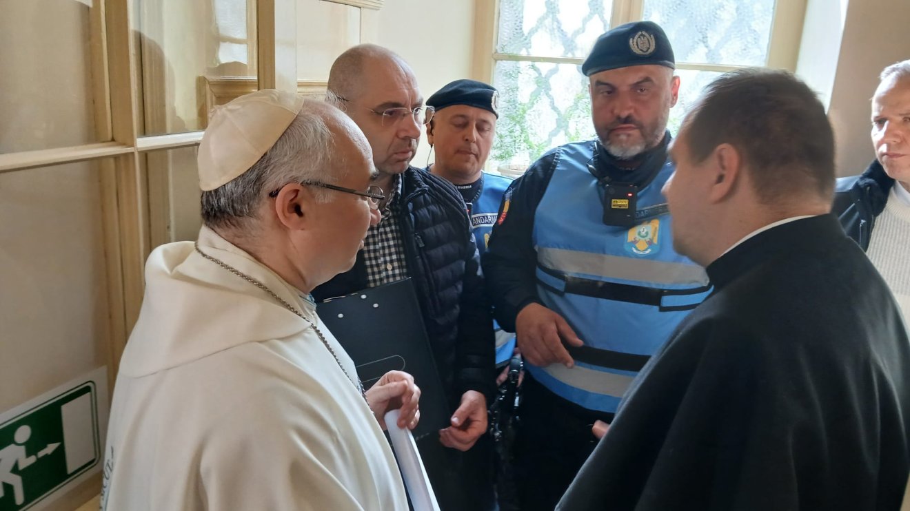 Az iskola felőli oldalon zárva volt az ajtó, így nem tudtak bemenni az épületbe, ezért a templomon keresztül próbálkoztak. Ott azonban épp zajlott a reggeli mise, így pár perc múlva kijöttek onnan. E cikk írásakor még zajlott a mise, így a csendőrök is vártak, hogy azt követően kommunikálni tudjanak Fejes Rudolf Anzelm apáttal.