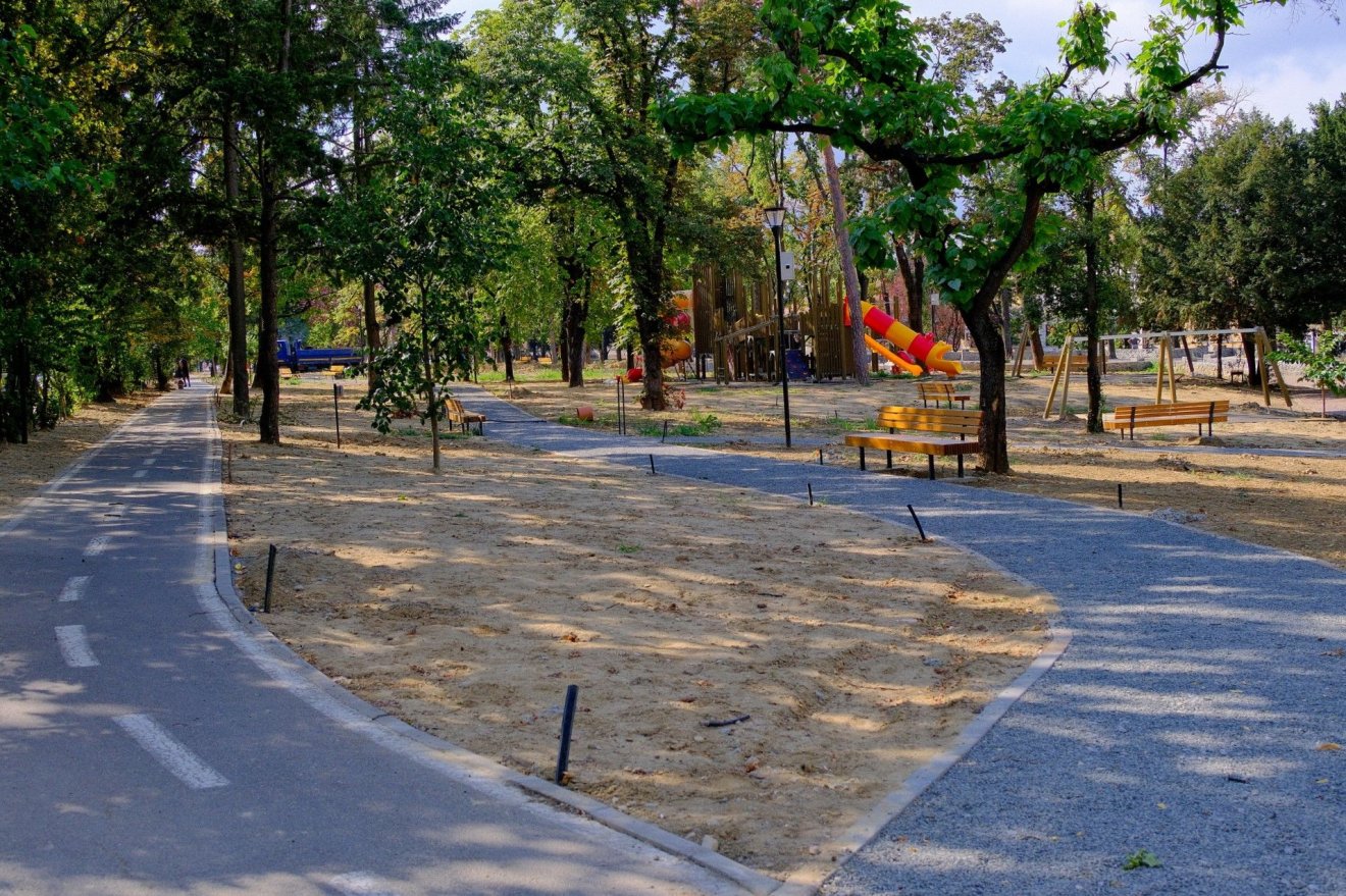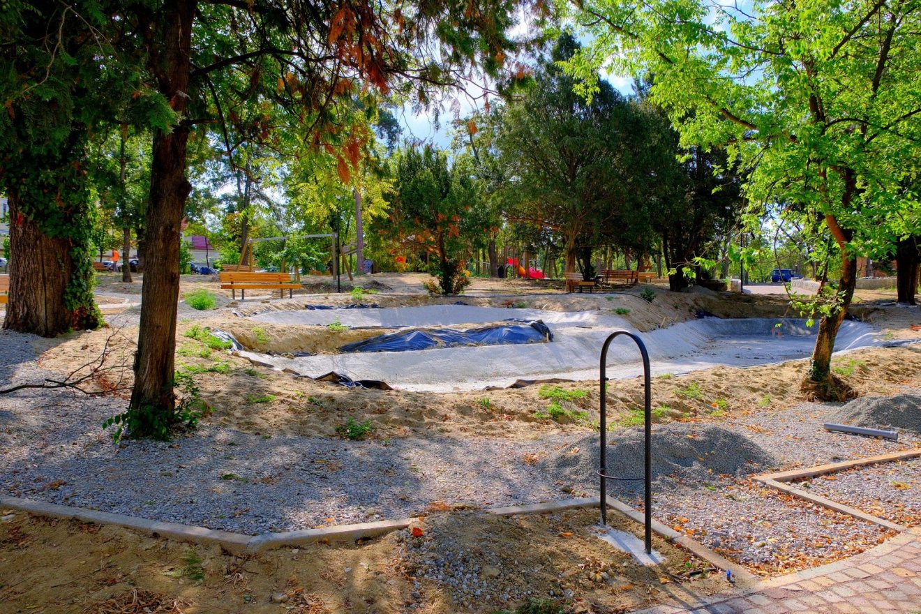 Áprilisban már a szökőkút helyén épülő vendéglátóipari egység helyszínét alakították ki, ugyanakkor már készült a játszótér, mely rekortán burkolatot kap, és elkezdték felszerelni a játékeszközöket. Ugyanakkor a japánkert helyszínén befejeződött a járdák kiásása és lerakása, a fitneszterep kialakítására is sor került, és az automata WC-t is felszerelték már, valamint rákötötték az elektromos és a csatornahálózatra. Ezzel egyidejűleg befejeződött a sétányok burkolása porfírkővel, előkészítették az öntözőrendszer árkait, és kiöntötték a LED-es világítóoszlopok alapjait. A park rehabilitációját célzó projekt keretében pihenőhelyet, kávézót, japánkertet, lugast, wi-fi csatlakozóval és mobiltelefon-töltő csatlakozókkal ellátott okospadokat, modern mosdókat és kerékpártárolókat fognak kihelyezni, játszóteret alakítanak ki.