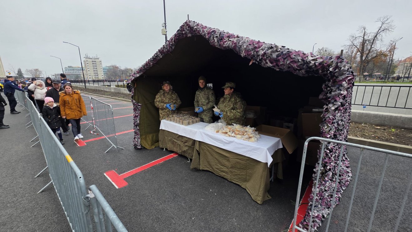 A ceremónia után sokan siettek a katedrális bal oldalán lévő parkoló felé, ahol hosszú sor alakult ki a csülkös babért. Ez a hagyományos ünnepi menü két év után tért vissza a december 1-jei programba. Összesen 2700 adag ételt osztottak ki, amelyet a katonai konyhán készítettek el.