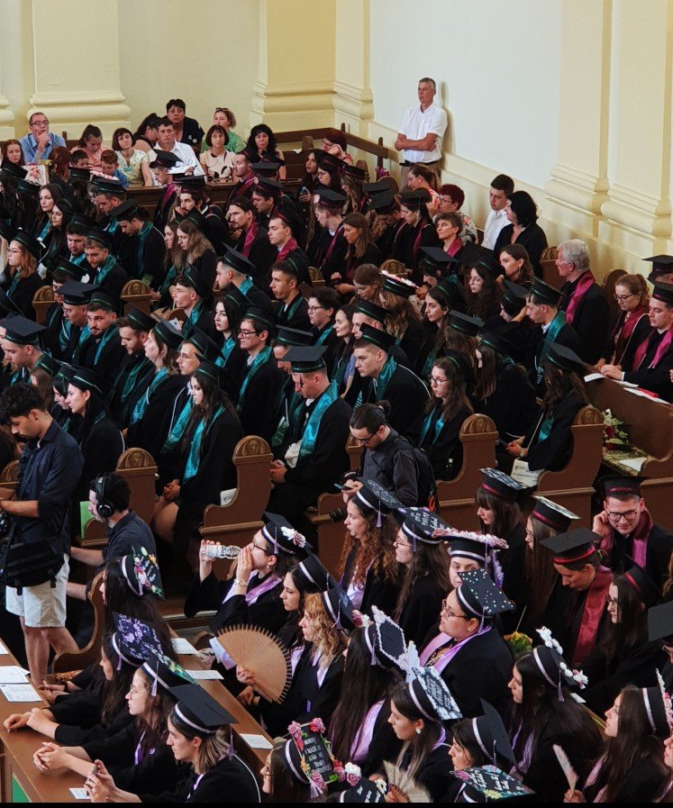 Nem sokkal 11 óra előtt sorakoztak fel az egyetem előcsarnokában a PKE végzős hallgatói, 207 alapszakos és 54 mesterképzésben részt vett személy, hogy a ballagás immár hagyományosnak tekinthető mozzanataként átvonuljanak a nagyvárad-újvárosi református templomba.