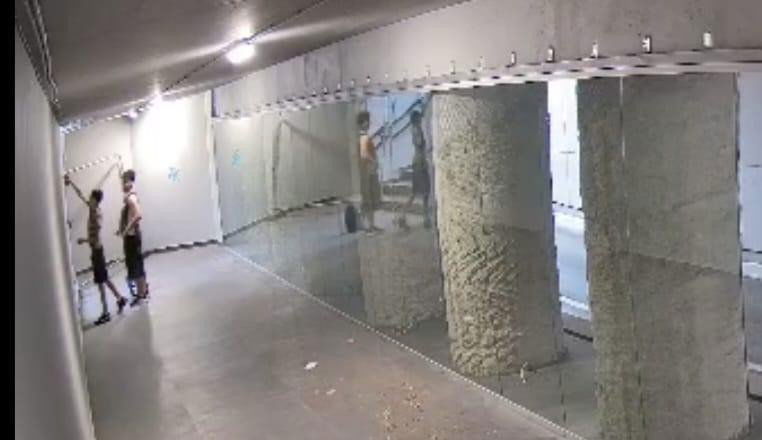A helyi rendőrség közleménye szerint az első eset május 24-én történt, ekkor két fiatal firkálta össze az átjáró üvegfalát egy alkoholos filctollal. A kamerák felvételei szerint a második eset június 5-én történt, ugyanazok a fiúk két másik fiatallal együtt visszatértek a helyszínre és festékspray-t használva lefestették az aluljáró betonfalait.