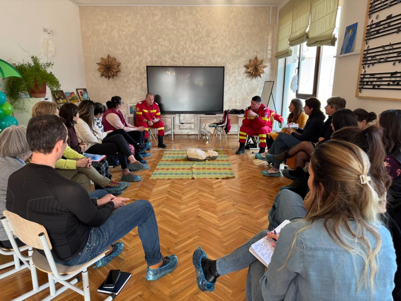 Február 6-án a váradi Joyful Learning általános iskola személyzete vehetett részt az elméleti és gyakorlati képzésen, amelyen olyan témákat érintettek, mint az elzáródott légutak szabaddá tétele, az újraélesztés (szívmasszázs és mesterséges lélegeztetés), vérzések típusai és a vérzéscsillapítás, beavatkozások égési sérülések és traumák esetén stb. Az elméleti foglalkozás után a tanárok a tűzoltóság kiképzőinek irányításával gyakorolták a Heimlich-módszert, az oldalsó biztonsági pozíciót, az újraélesztési manőverek és más életmentő beavatkozások végrehajtását.