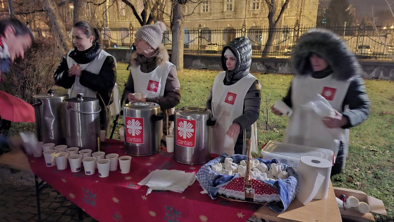 Az ünnepség végén a Caritas Catolica munkatársainak jóvoltából szokás szerint meleg teát és forralt bort lehetett fogyasztani, illetve ezúttal hájas tésztát is.