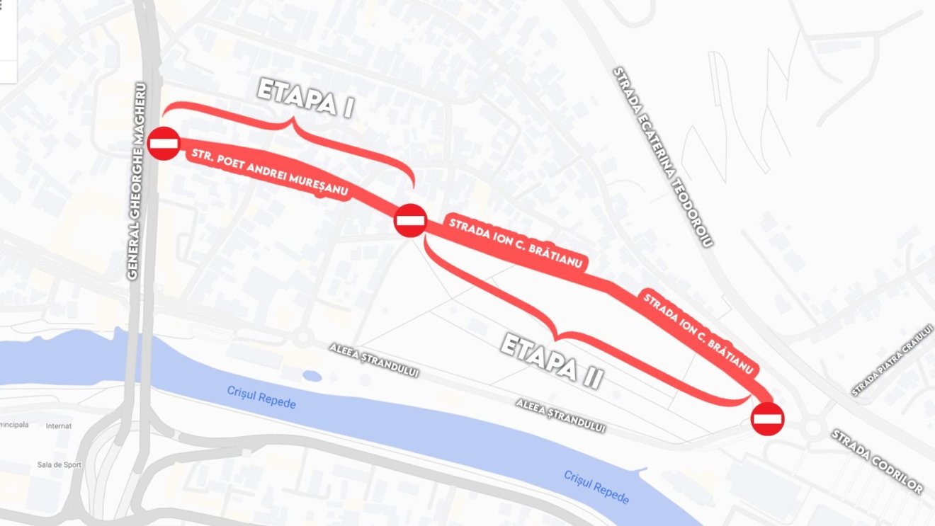 A víz- és csatornahálózat javítási munkálatai miatt forgalomkorlátozás lépett életbe Nagyvárad több pontján. Március 12. és május 31. között lezárták az autók elől a Szováta utcai Penny Market parkolóját, csak egy ideiglenes behajtót hagytak meg, ahol meg lehet közelíteni az üzletet. Március 17-től május 31-ig lezárják az autóforgalom elől az Andrei Mureșanu, április elejétől szintén május 31-ig pedig az I. C. Brătianu utcát is.
