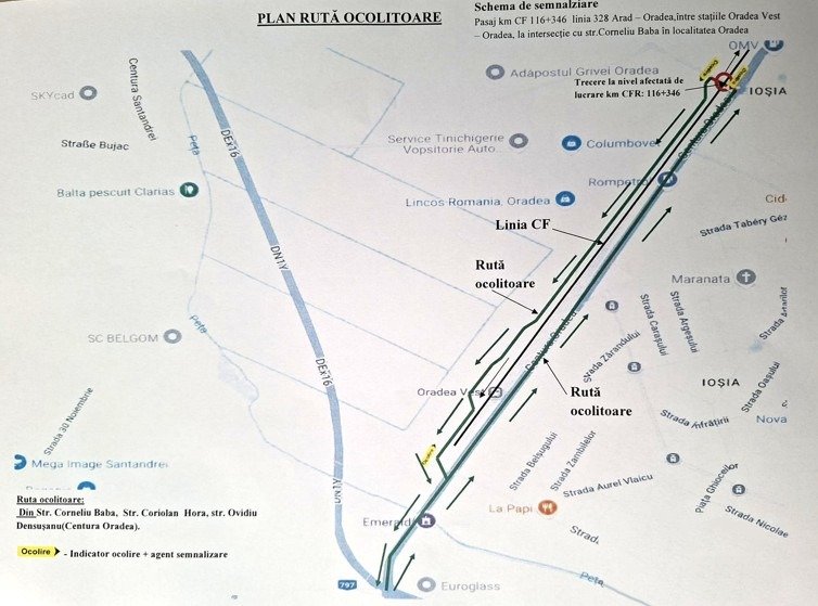 Július 18-án, péntek este lezárják a közúti forgalom elől Nagyváradon a Corneliu Baba utcát a vasúti átjárónál lévő szakaszon, mert megjavítják a meghibásodott sínt. A Nagyváradi Polgármesteri Hivatal közleménye szerint pénteken este tíz órától részlegesen lezárják a forgalmat, és mindkét irányban csak egy sávon lehet majd haladni. Ezt követően este tizenegy órától teljesen lezárják a forgalmat július 19., szombat hajnali négy óráig, majd ismét egy-egy sávban lehet közlekedni mindkét irányban. A megszokott forgalmi rend a vasúti átjárónál szombat reggel 5 órakor áll vissza. A forgalomkorlátozás ideje alatt az autóforgalmat a Corneliu Baba–Coriolan Hora–Ovid Densușianu utcákra terelik. A közleményből megtudható az is, hogy szeptember 21-ig meghosszabbítják a forgalomkorlátozást a Louis Pasteur utcai vasúti felüljáró környékén, mert elhúzódnak az ottani bontási munkálatok.