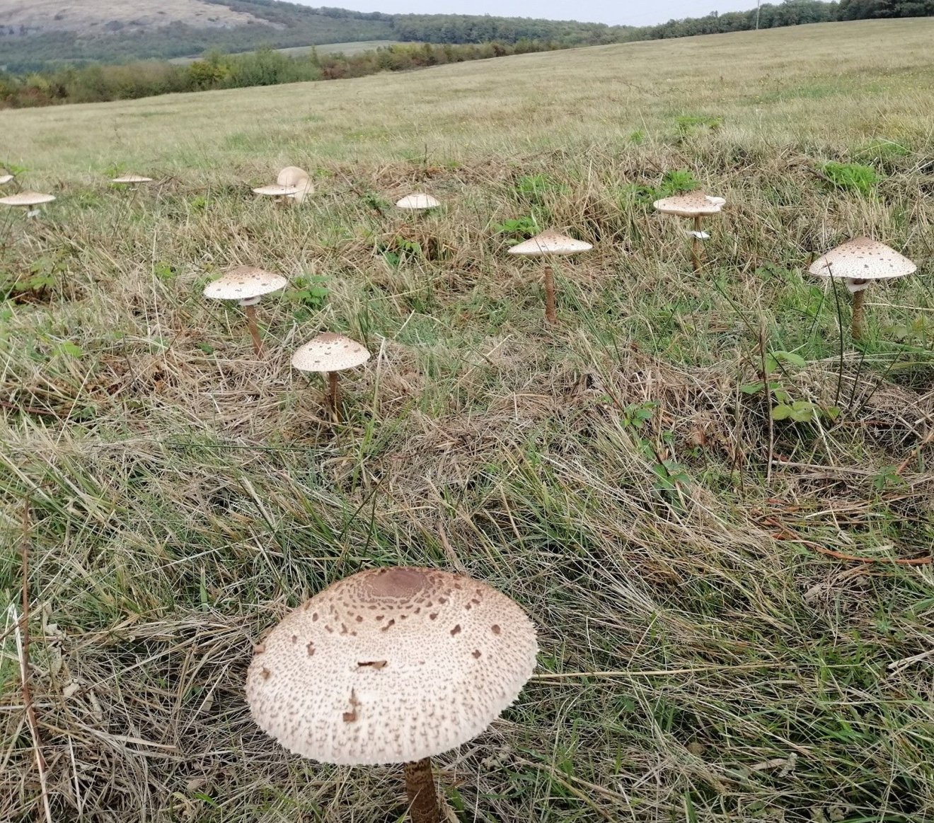 Ősszel hatalmas őzlábgombákat is találhatunk a Betfia feletti réten