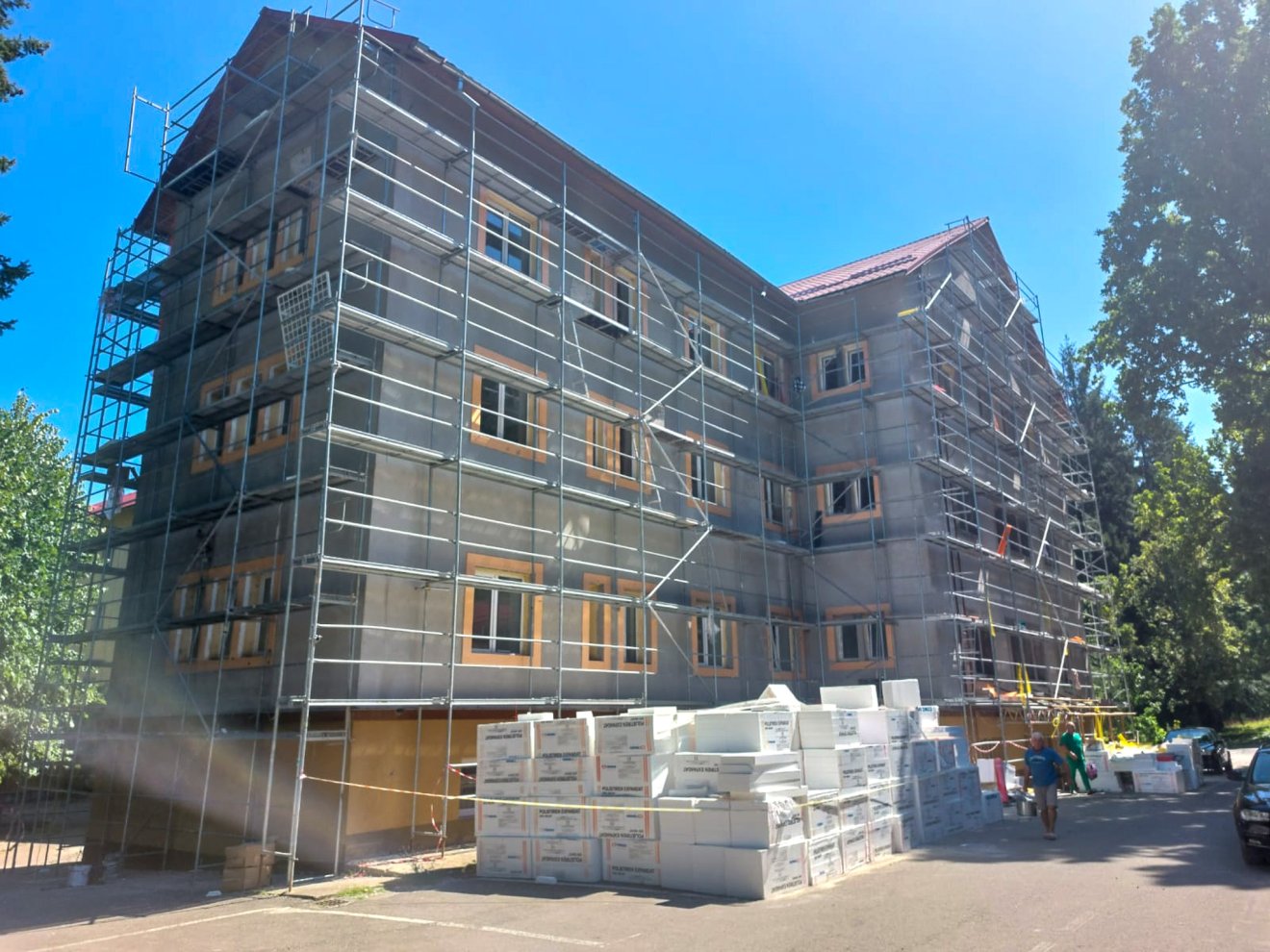 A legnagyobb méretű ingatlan az A pavilon, ezért ennél egyelőre csak a homlokzat, illetve a külső falak felújításánál tartanak.