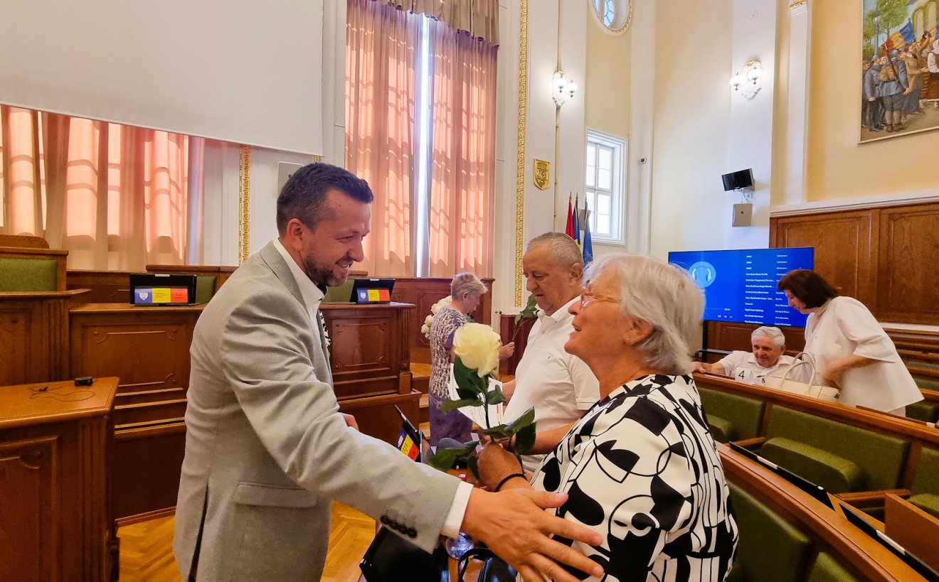 Szép hagyomány Nagyváradon, hogy emléklappal köszöntik mindazokat a váradi házaspárokat, akik 50 éve kötötték egybe életüket. Június 25-én ismét sor került egy ilyen ünnepségre a városháza nagytermében, ahol az aranylakodalmas házaspárok és családtagjaik gyűltek össze. Ezúttal Florin Birta polgármester gratulált az ötvenedik házassági évfordulójukat ünneplő 27 házaspárnak.