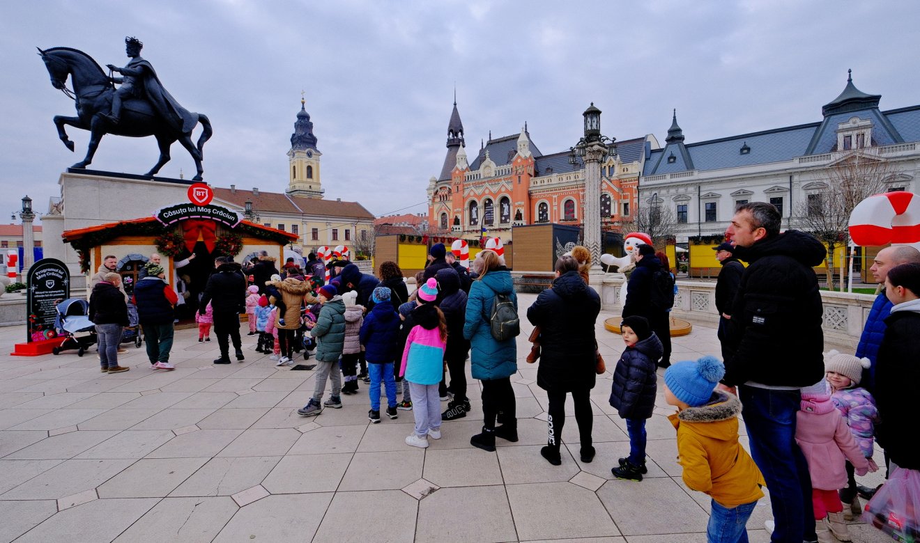 Idén is különleges meglepetéssel készült a Visit Oradea Egyesület a karácsonyi vásár keretében. A gyerekek december 23-án, kedden 11 és 13 óra között találkozhattak a Télapóval a Szent László téren felállított házikójánál. A nagy szakállú erre az alkalomra stílusosan, a feldíszített korabeli villamossal érkezett, és idén sem jött üres kézzel. Az ünnepi villamos pontban 11 órakor futott be a főtérre, ahol már jóval ez előtt rendezett sorban álltak a kisgyermekes családok, a nagyszülők az unokáikkal.