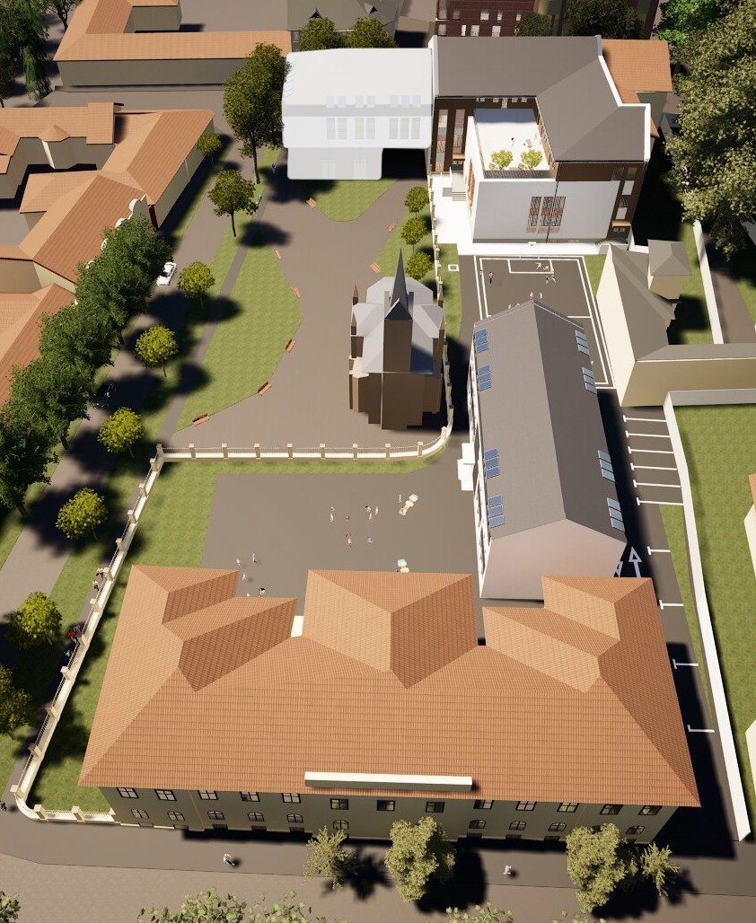 A projekt a Szent László-kápolna melletti udvarban, a jelenlegi elavult épületek helyén valósul meg, és egy korszerű, 21. századi oktatási infrastruktúrát teremt: korszerű laboratóriumok az alagsorban; egy 632 négyzetméteres, mintegy 450 fő befogadására alkalmas tornaterem a földszinten; öt új tanterem és tanári szoba az emeleten; a tetőszinten fedett játszó- és közösségi tér.