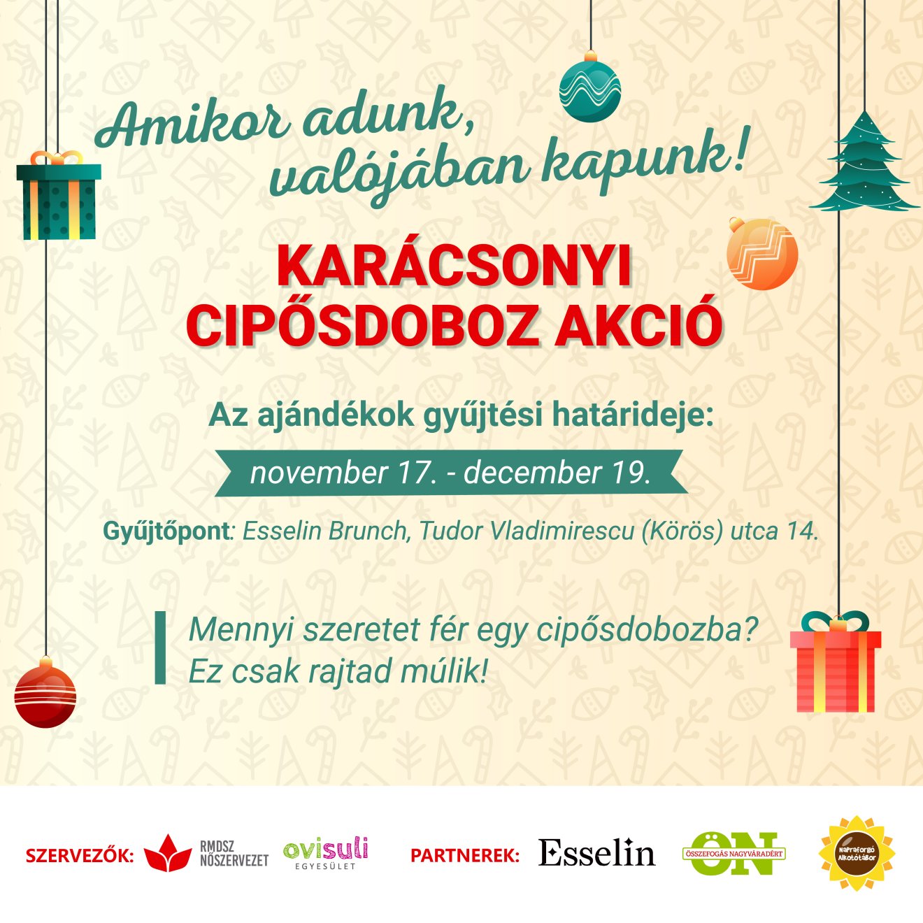 Az Ovisuli Egyesület közösen a Bihar megyei RMDSZ Nőszervezetével és partnereik támogatásával karácsonyi cipősdoboz-gyűjtést szervez november 17. és december 19. között.