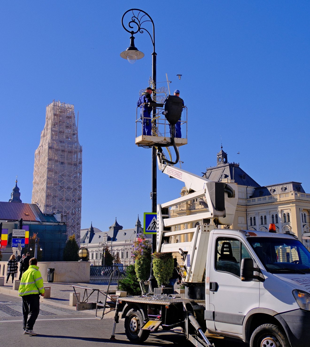 Zajlik a karácsonyi fények felszerelése