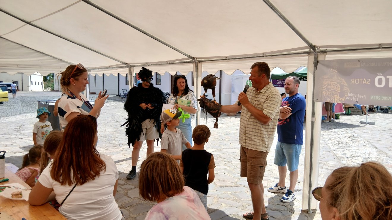 Nagy izgalmat keltett a gyermekek körében az élőszereplős madármesekönyv bemutató, hiszen a Földön szárnyakon című könyvben szereplő madarak közül kettő, Bogyó, a macskabagoly és Henriett, a héja jelen volt, őket a bemutató közben és után közelebbről is meg lehetett nézni, simogatni, a bátrabbak fejére, vállára és karjára rá is ültette a madarakat Imre István, a Földesi Madársuli vezetője, aki a kötetben is szerepel.