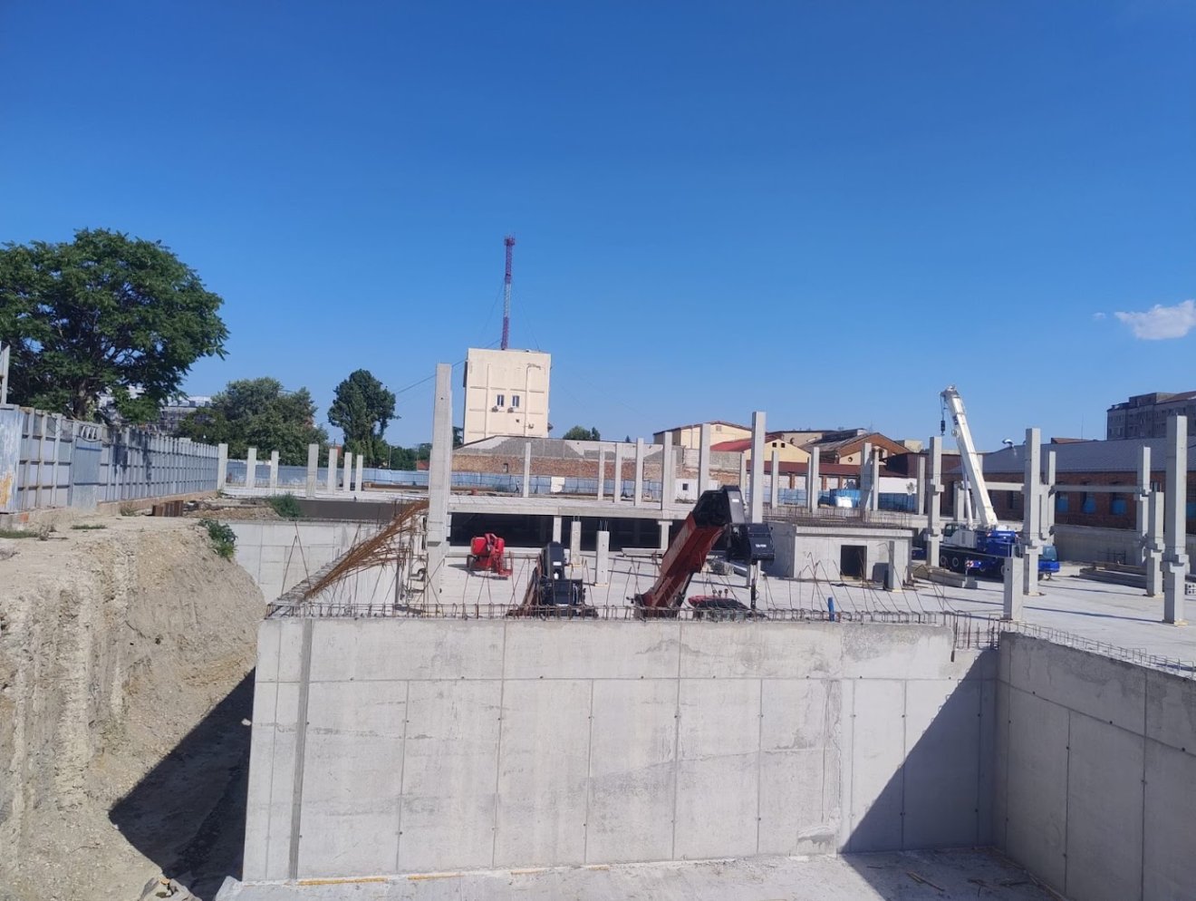 Eddig kiásták az épület alapzatát, beton- és tartószerkezeteket öntöttek, vízszigetelési munkálatokat végeztek, és kihelyezték az előregyártott elemek egy részét.