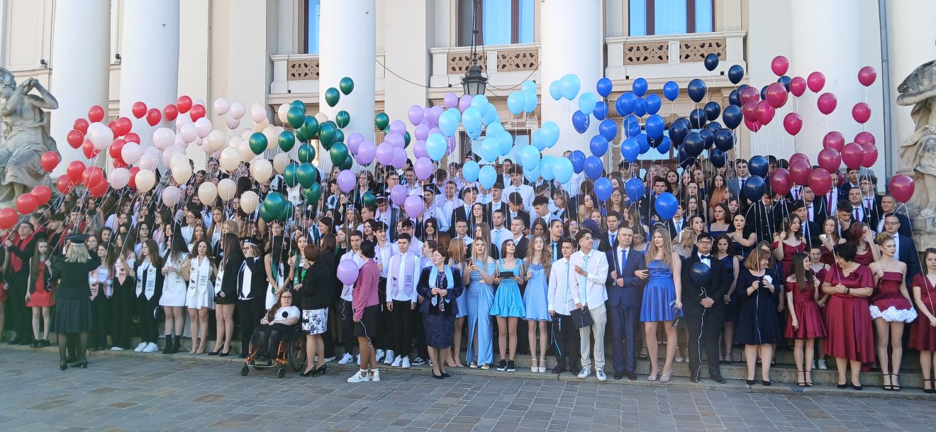 Immár hagyománnyá vált, hogy a váradi Mihai Eminescu Főgimnázium végzős osztályai közös képet készítenek a színház épülete előtt. Erre az alkalomra ballagóruhájukat öltötték fel a végzősök, és mind a kilenc osztály különböző színű lufit tartott a kezében. Ez a momentum meghatározó a tizenkettedikes diákok életében, hiszen tekintettel arra, hogy kilenc osztály végez az Eminsecu iskolában, nincs lehetőség arra, hogy egy közös ballagási ünnepséget tartsanak, ezt a román és a magyar tagozat minden osztálya külön-külön szervezi meg. Gratulálunk a ballagóknak és sok sikert kívánunk az érettségin!
