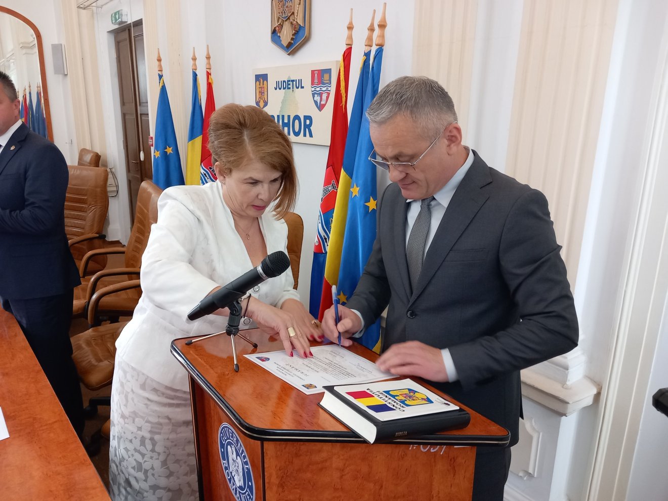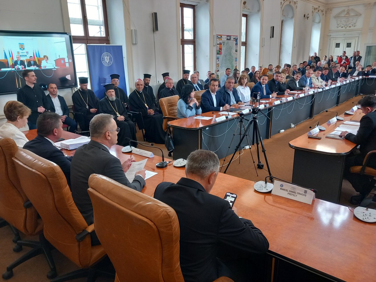 Zsúfolásig megtelt csütörtök délután a megyeháza díszterme világi és egyházi elöljárókkal. Feltűnő volt, hogy az ortodox egyház egy teljes „kléruscsapattal” képviseltette magát, és a kezdőima, illetve áldás elmondására is csak Sofronie Drincec püspököt kérték fel, holott a római és a görögkatolikus egyházmegyék főpásztorai, Böcskei László és Virgil Bercea is jelen voltak az ünnepségen.