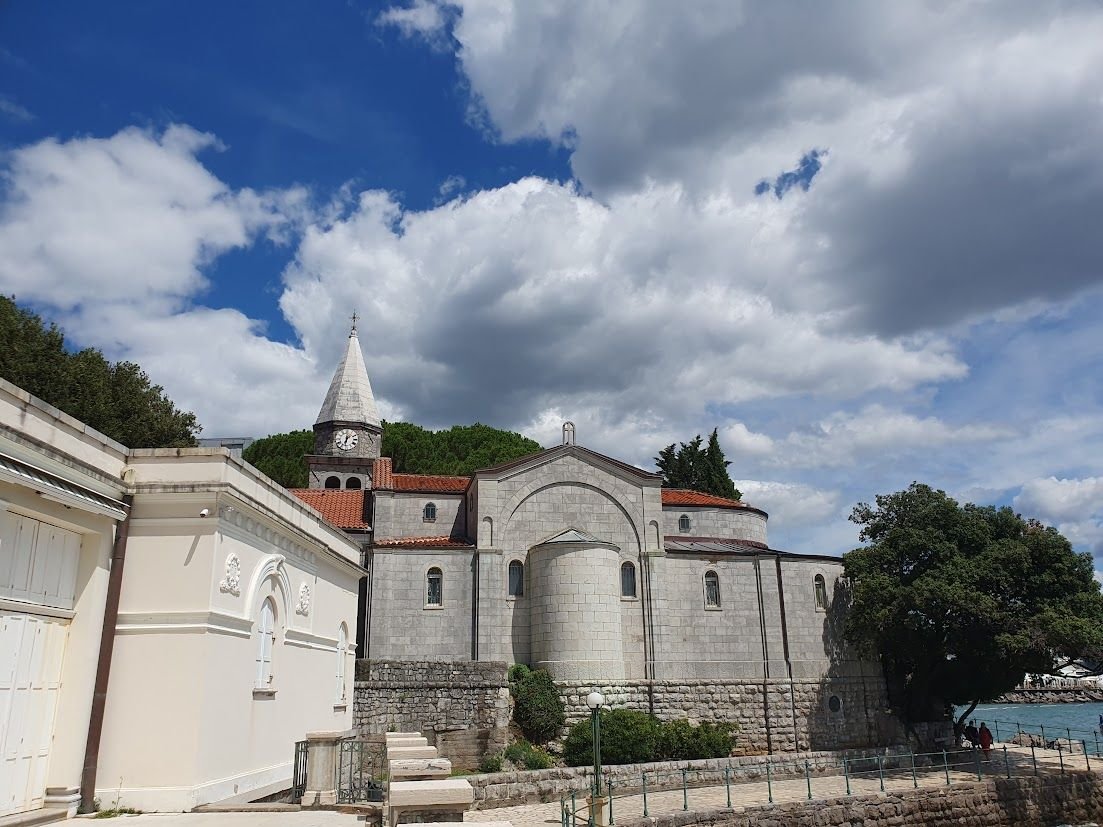 A Hotel Imperialtól szinte észrevétlenül rálépünk a Ferenc József sétányra (Lungomare), amely 12 kilométer hosszan kanyarog a tenger szélén. A sós levegő, a napfényben csillogó víztükör és a part menti sziklák mind arra csábítanak, hogy lelassítsunk, és hagyjuk, hogy a látvány átvegye az irányítást. A sétány teljes hosszában 1911-re készült el, és a monarchia elitjének egyik kedvenc délutáni programja volt itt andalogni. Voloskóból indul, Opatiján és Ičićin át egészen Lovranig vezet. Balra a park lombjai között feltűnik a Szent Jakab-templom kupolája, amelyet a 15. században a bencés rend alapított. A templom a város történetének csendes tanúja: évszázadok során többször átépítették, barokk és klasszicista jegyekkel gazdagították.