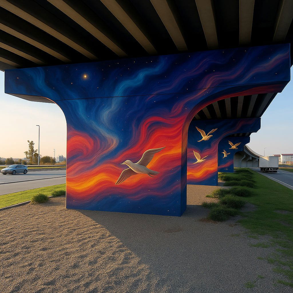 - „A természet repülése” – az Aradi úti közúti felüljáró pilléreinek kifestése (121 szavazat, 95.000 lej);