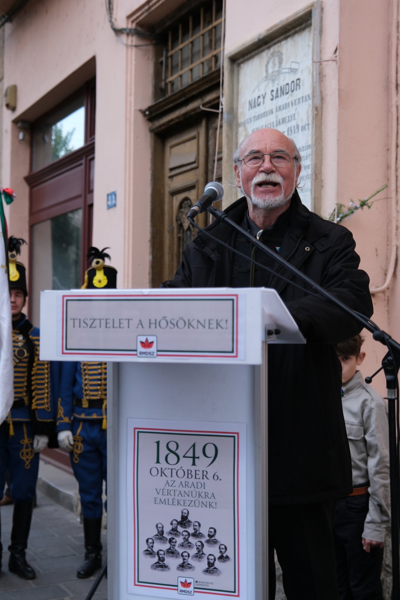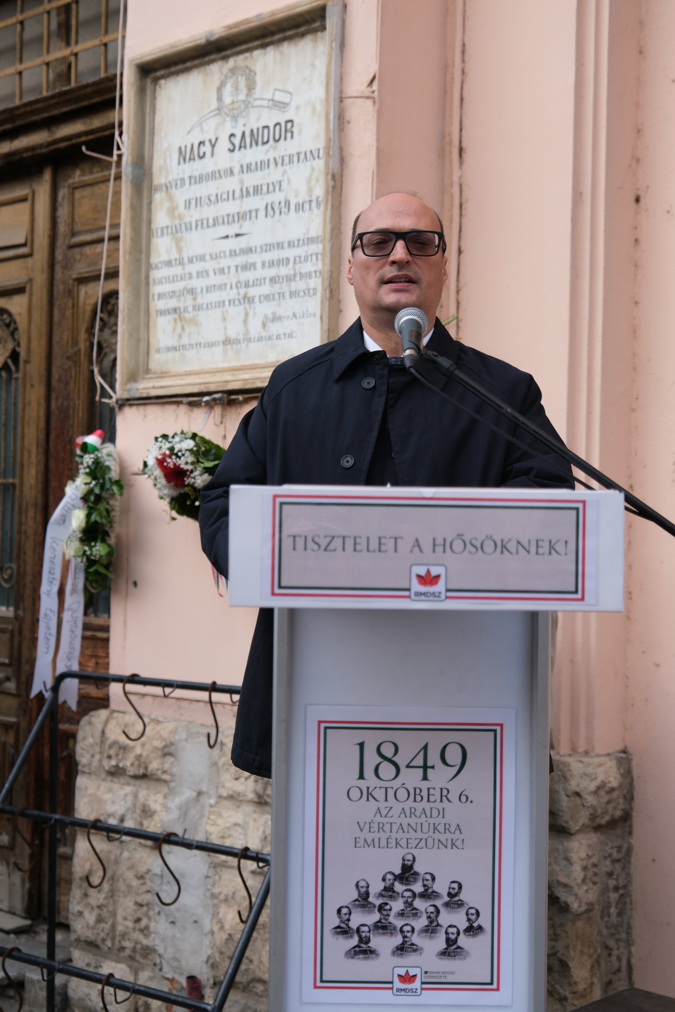 Meleg Vilmos színművész, az RMDSZ megyei választmányi elnöke arra hívta fel a figyelmet: október 6-án Nagyváradon minden évben Nagysándor József emléktáblájánál hajtunk fejet, a hónap vége felé pedig a szintén kivégzett Szacsvay Imrére szoktunk emlékezni a szobránál, „akinek csak egy tollvonás volt a bűne”. „Nekünk tehát 1849 kapcsán két vértanúnk is van. De mártírok mind, akik a szabadság-testvériség-egyenlőség eszméjéért vállalták a halált, igaz keresztény magatartással és elköteleződéssel hitük, családjuk, hazájuk iránt. Hiszen nem csak »úgy hozta a helyzet«, hanem ők tudták előre, hogy ha a harc elbukik, akkor mi vár rájuk. Tisztában voltak azzal, hogy a felségárulást, amit a szabad magyar haza jelentett, mivel »jutalmazzák«. És mégis vállalták, pedig ifjak voltak – nagy részük egészen fiatal – és családos emberek. Vállalták, mert olyan neveltetésben részesültek, olyan hitben nőttek fel, hogy a magyar nemzetet, a saját nemzetiségüktől függetlenül, a sajátjuknak tekintették” – fogalmazott Meleg Vilmos.
