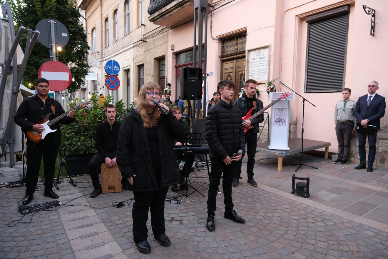 A beszédeket és előadásokat követően a jelenlevők megkoszorúzták Nagysándor József aradi vértanú emléktábláját.