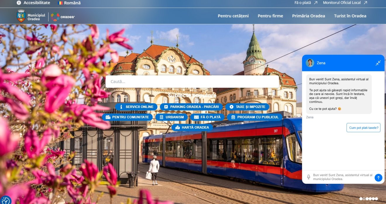 A Zena mesterséges intelligencián alapuló virtuális asszisztens a város hivatalos honlapján (www.oradea.ro) érhető el, közvetlenül a főoldalról.