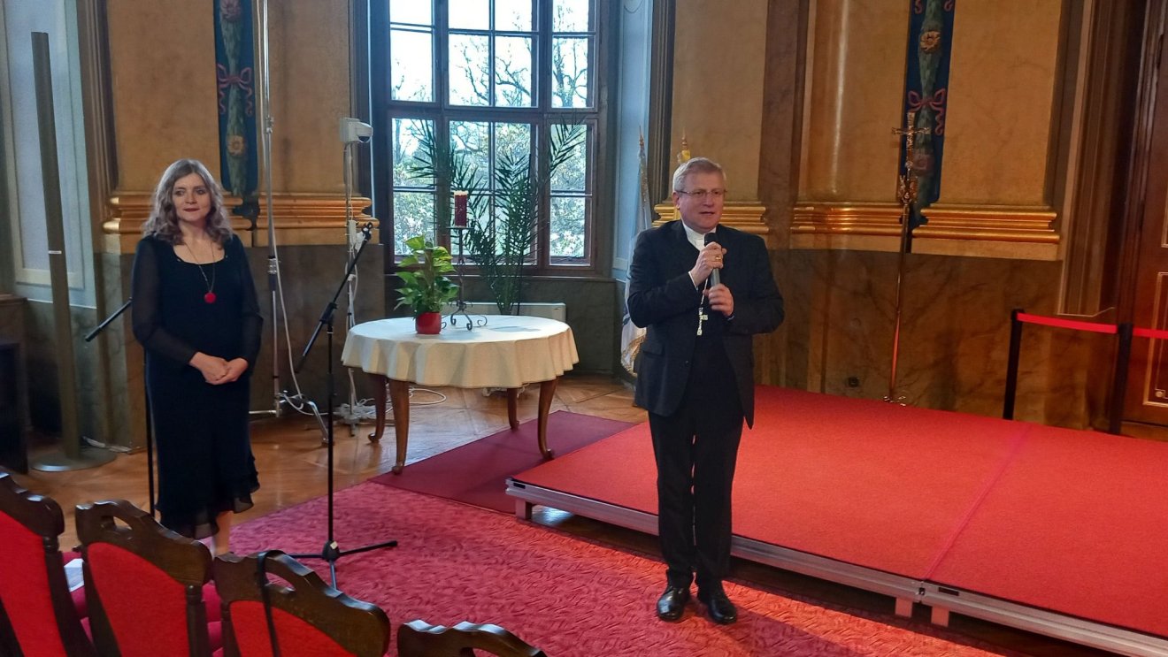 “Ez a rendezvény valójában több volt egy egyszerű koncertnél, ez egy igazi ájtatosság volt, ti pedig a legjobb helyen vagytok, hazaérkeztetek”, fogalmazott házigazdai minőségében Böcskei László megyés püspök, utalva az ünnepség lélekemelő hangulatára, illetve arra is, hogy annak idején a püspöki palota építtetője, Patachich Ádám püspök a dísztermet a zenének gondolta ki, bár ő Kalocsára való helyezése miatt csupán rövid ideig élvezhette álmának megvalósulását. “A zene egy univerzális nyelv, a nagyböjt különleges időszakában pedig segít abban, hogy a jubileumi szentévben még inkább ráhangolódjunk a közelgő húsvét ünnepére”, tette hozzá a váradi egyházmegye főpásztora, aki külön köszöntötte Nacsa Lőrincet és Brendus Rékát, a Miniszterelnökség nemzetpolitikai államtitkárságának államtitkárát, illetve főosztályvezetőjét. Nagy Gabriella igazgató-helyettest üdvözölve arról is beszélt az egyházi elöljáró, hogy az elmúlt években többször is sikeresen együttműködött a püspökség és a művészeti líceum, és ez a jövőben is folytatódni fog. Tervezik például, hogy az idei Festum Varadinum keretében kiállítása nyíljon a diákoknak a püspöki palota második emeletén, Böcskei László arra kérte őket, hogy az idő fogalmát fessék meg.
