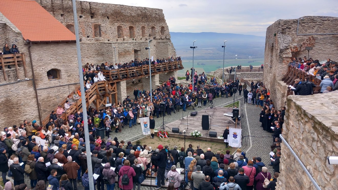 Kovács István püspök áldásával és vezetésével indultak fel gyalogosan a várba. A felvonó is működött, hogy az idősek is fel tudjanak menni „magos Déva várába”.