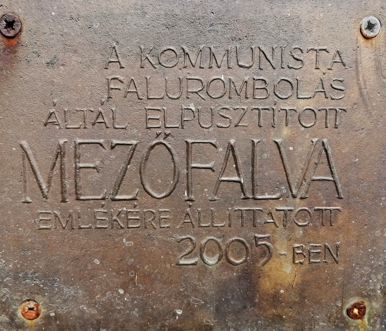 Mezőfalva pusztulására emlékeztető tábla a hegyközkovácsi templom mellett