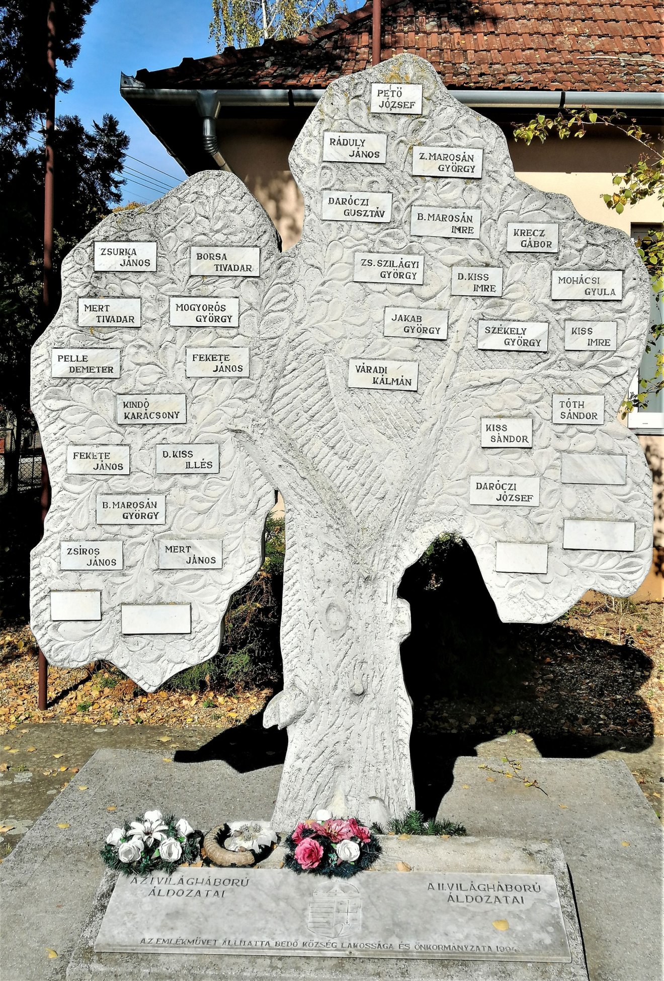 Az 1994-ben átadott világháborús emlékmű Bedőben