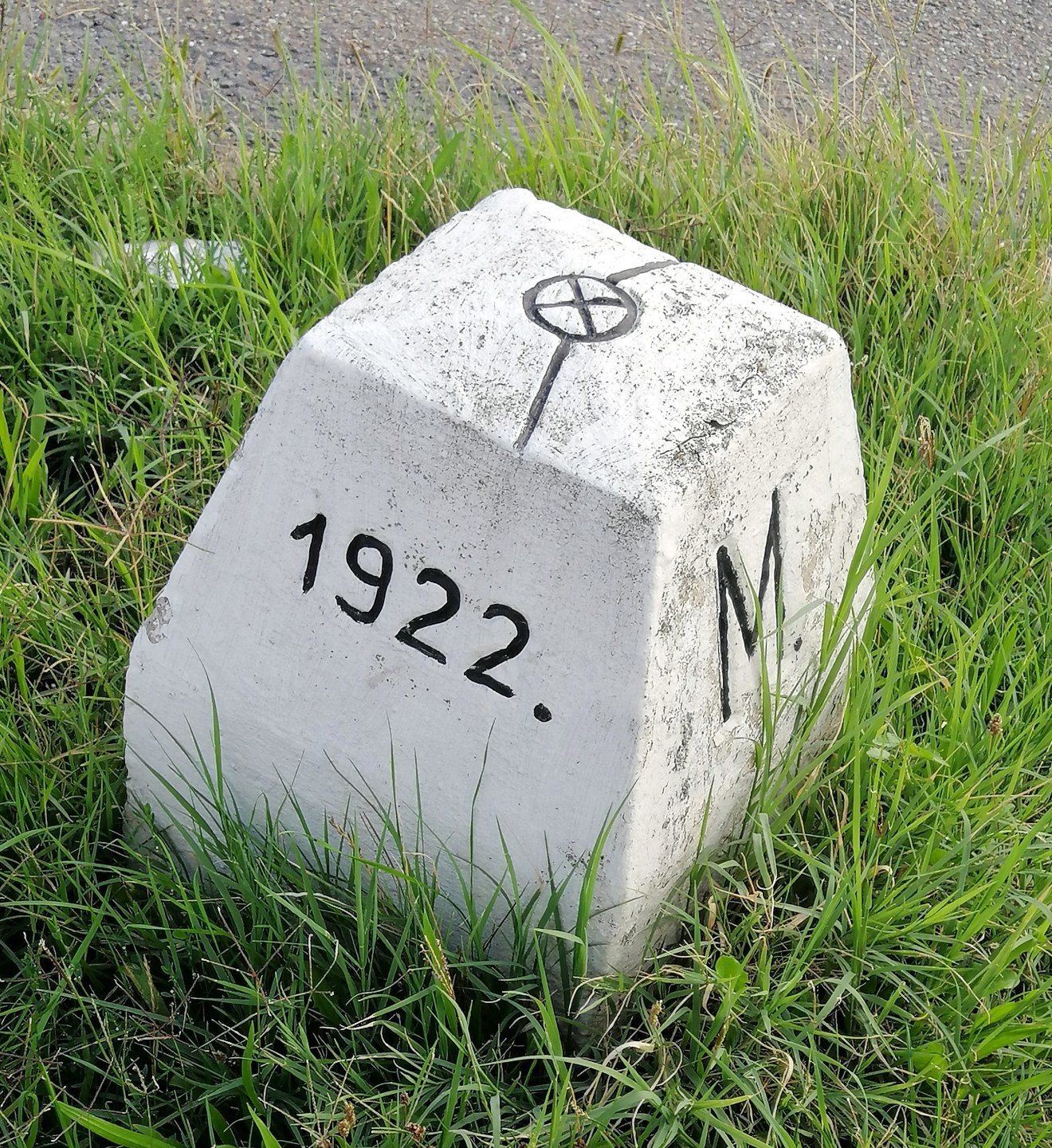 Ahogy tovább haladunk Nagyvárad felé, a határátkelőnél, a magyarországi oldalon lévő épületek után, ott áll előttünk a kis vörös sáv, ami a két ország határát jelzi. A vonalon, a lábunk előtt, közvetlenül a bicikliút mellett egy fehérre meszelt kő is van. Egyik oldalán az 1922-es évszámot, két szemben lévő oldalon az M és az R betűket, a negyedik oldalon pedig betű- és számkombinációt láthatunk. A kő északi oldalán lévő 1922-es évszám arra utal, hogy ebben az évben, április elejére fejezték be a határok végleges megállapítását. Az M és az R betű jelentése: Magyarország, Románia. A negyedik oldalon lévő betű és szám a határnak ezt a szakaszát jelöli. Az egész határt több részre osztották, a szakaszokat betűkkel és számokkal jelölték, a betű- és számkombináció a határ különböző szakaszain változik. A kő tetején egy kör van, benne kereszttel. A kereszt, és így a kör középpontja a pontos határpontot jelöli. A jelenlegi határét.